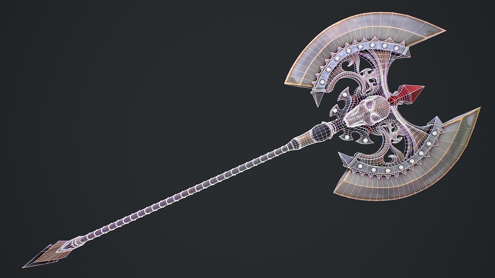 Hello. This is a high definition quality polygon of a Fantasy axe 1 3D Model with PBR textures. Extremely detailed and realistic. Suitable for movie prop, architectural visualizations, advertising renders and other. The archive includes Obj and FBX, textures for the Unity: Base color, Height, Metallic, Mixed AO, Normal_OpenGL, Roughness. And also included in the archive textures for UE: BaseColor, Normal, OcclusionRoughnessMetallic. All textures are 4k resolution. The model contains 1 object: Fantasy_axe_1. If you need, we will make a file of this model for 3D printing especially for you.