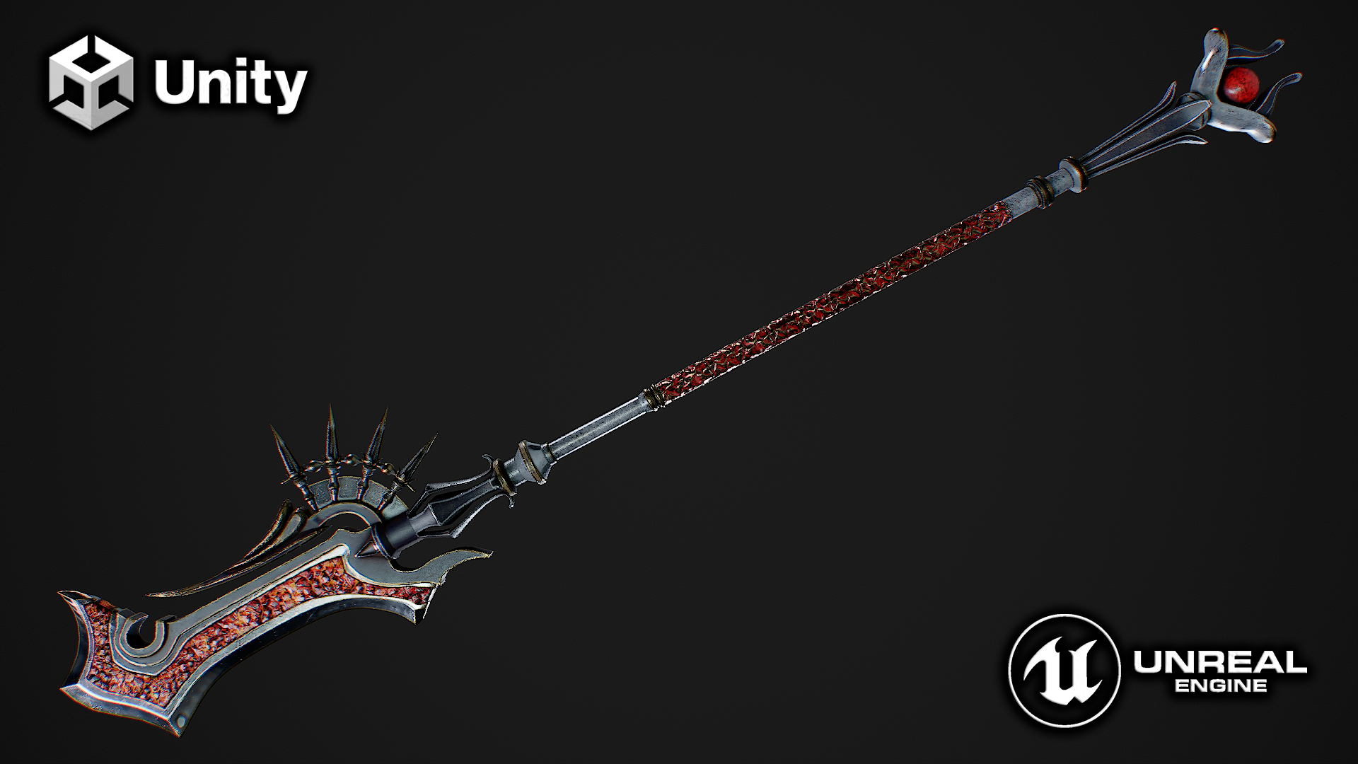 Hello. This is a high definition quality polygon of a Fantasy Staff 3D Model with PBR textures. Extremely detailed and realistic. Suitable for movie prop, architectural visualizations, advertising renders, games, VR, AR and other. The archive includes Obj and FBX, textures for the Unity: Base color, Metallic, Mixed AO, Normal_OpenGL, Roughness. And also included in the archive textures for UE: BaseColor, Normal, OcclusionRoughnessMetallic. All textures are 4k resolution. The model contains 1 object: Fantasy Staff. If you need it, I will make you a file for stereolithography.