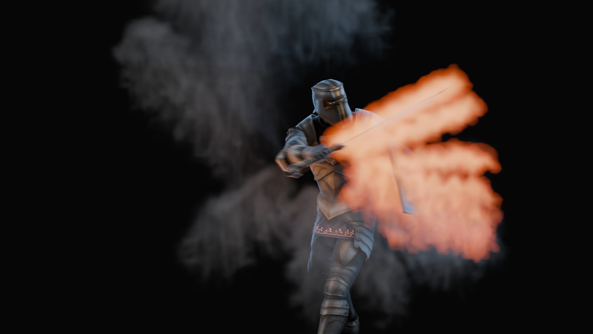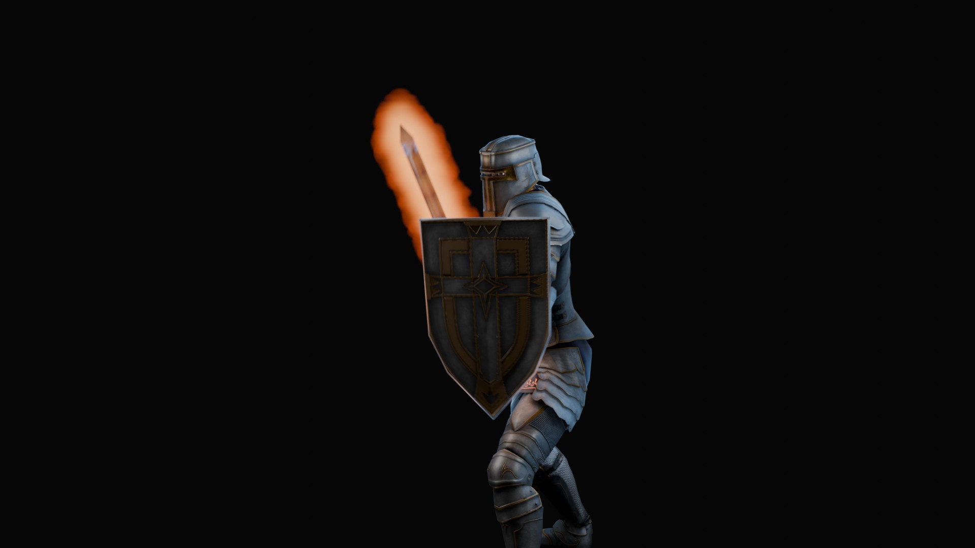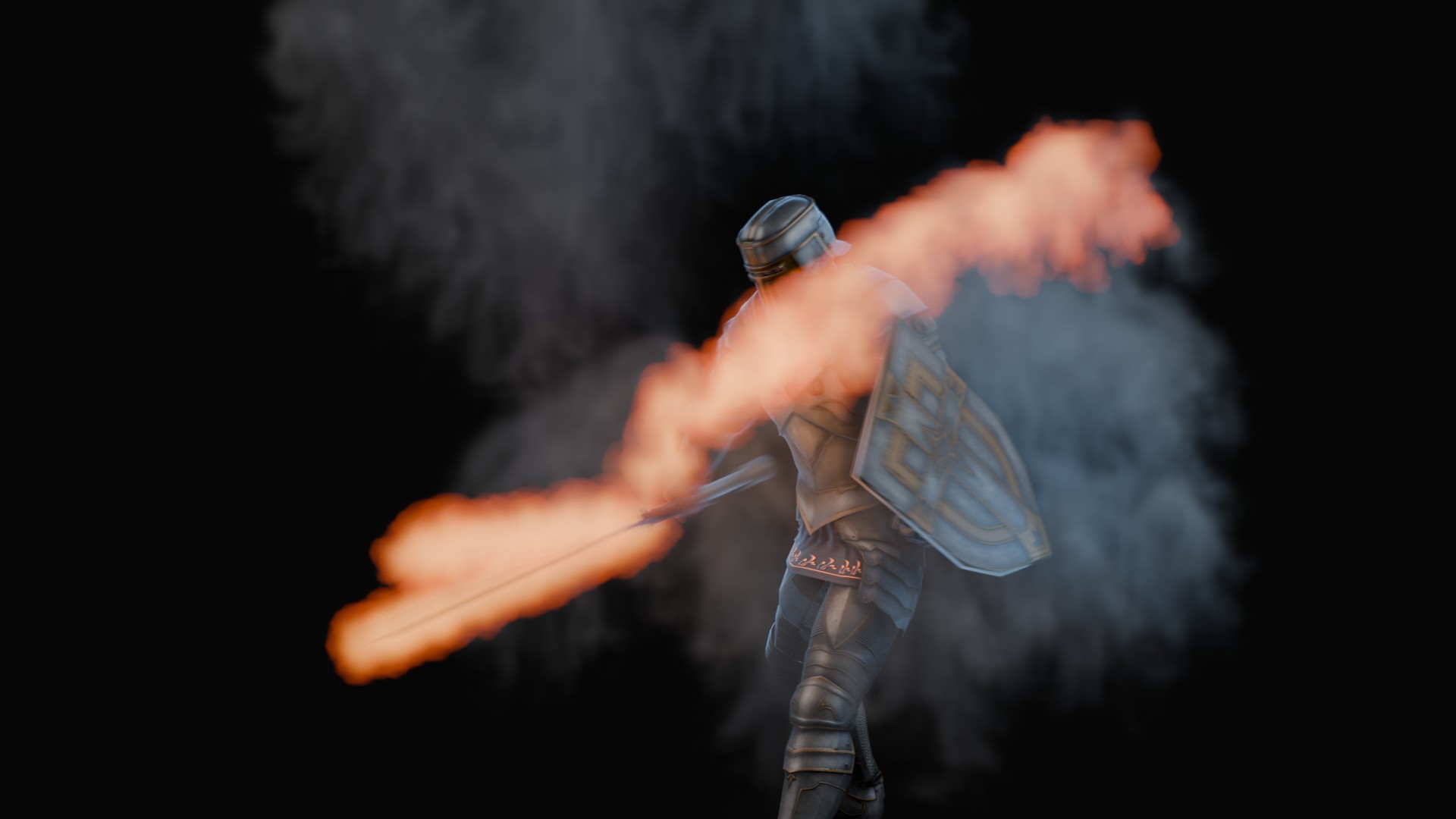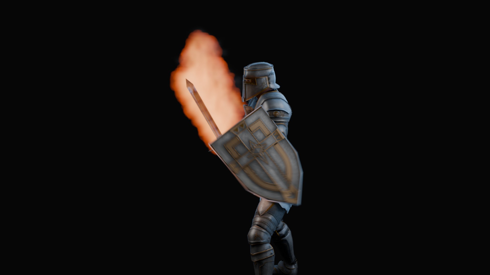 3D animation of flaming sword, 3d model created using a blender, content includes: