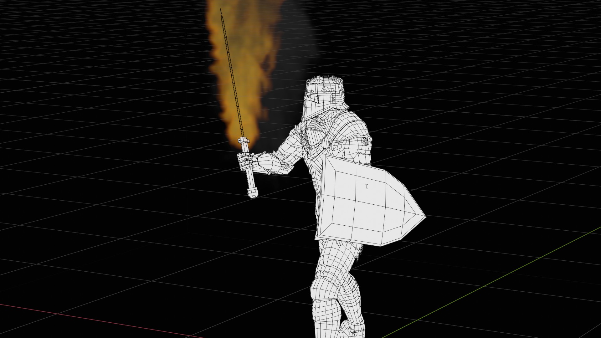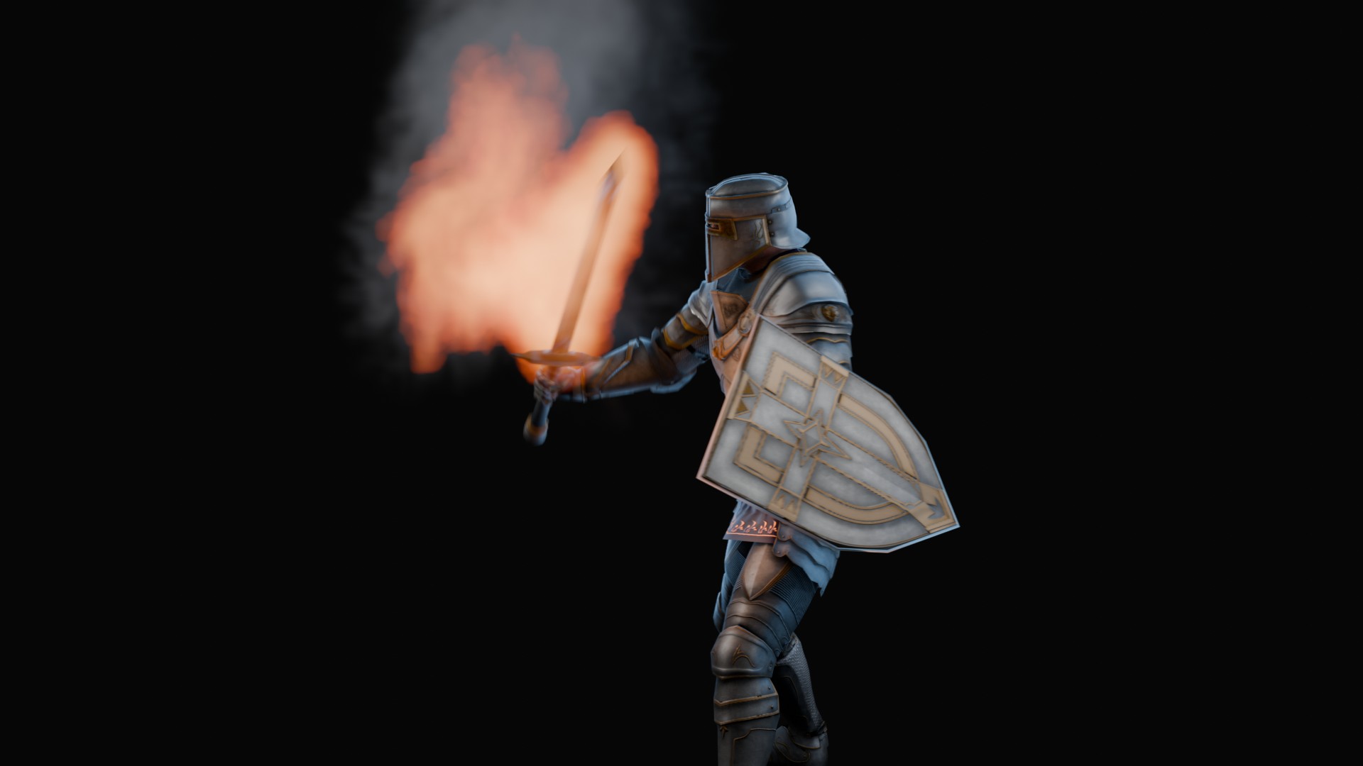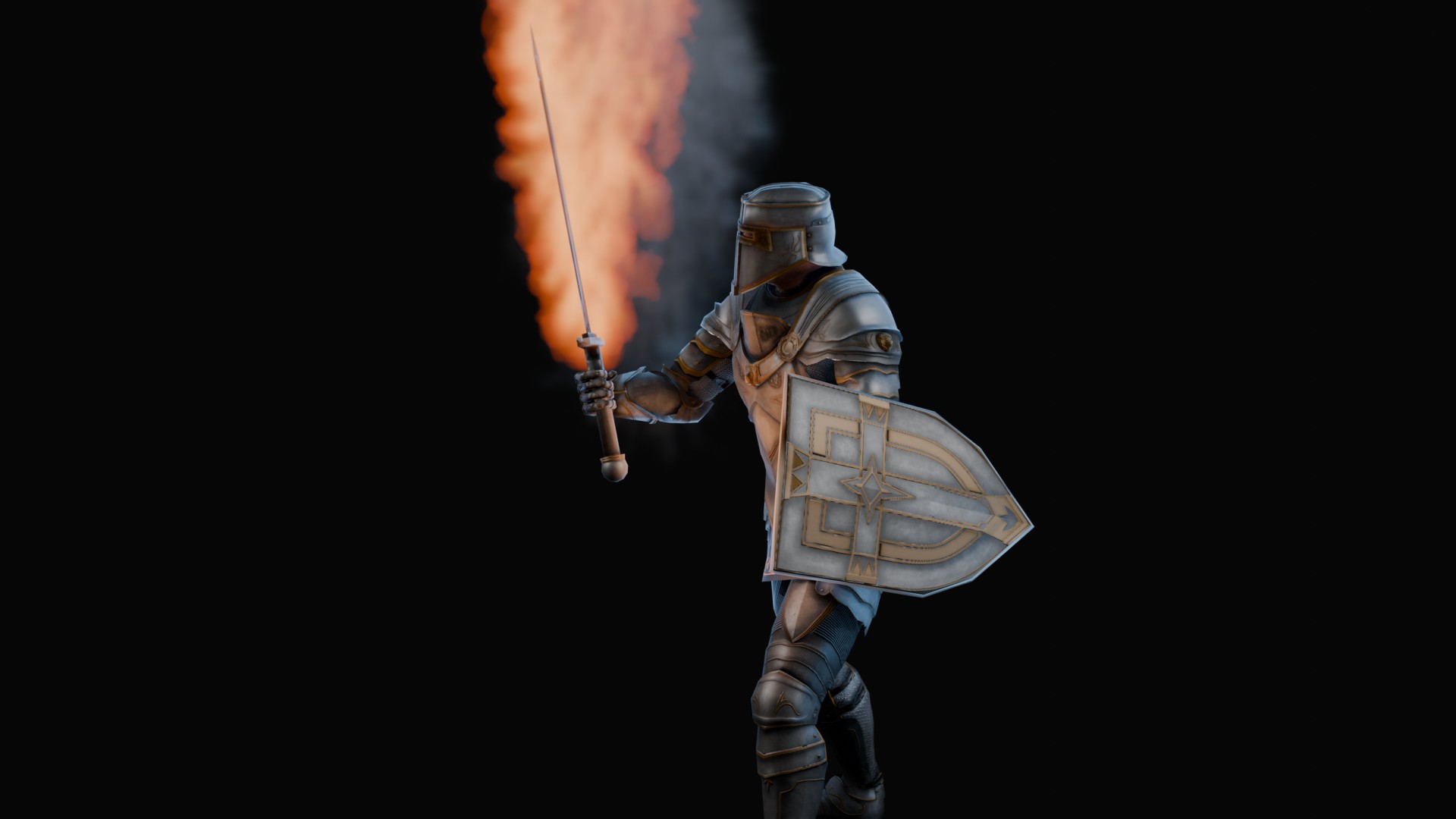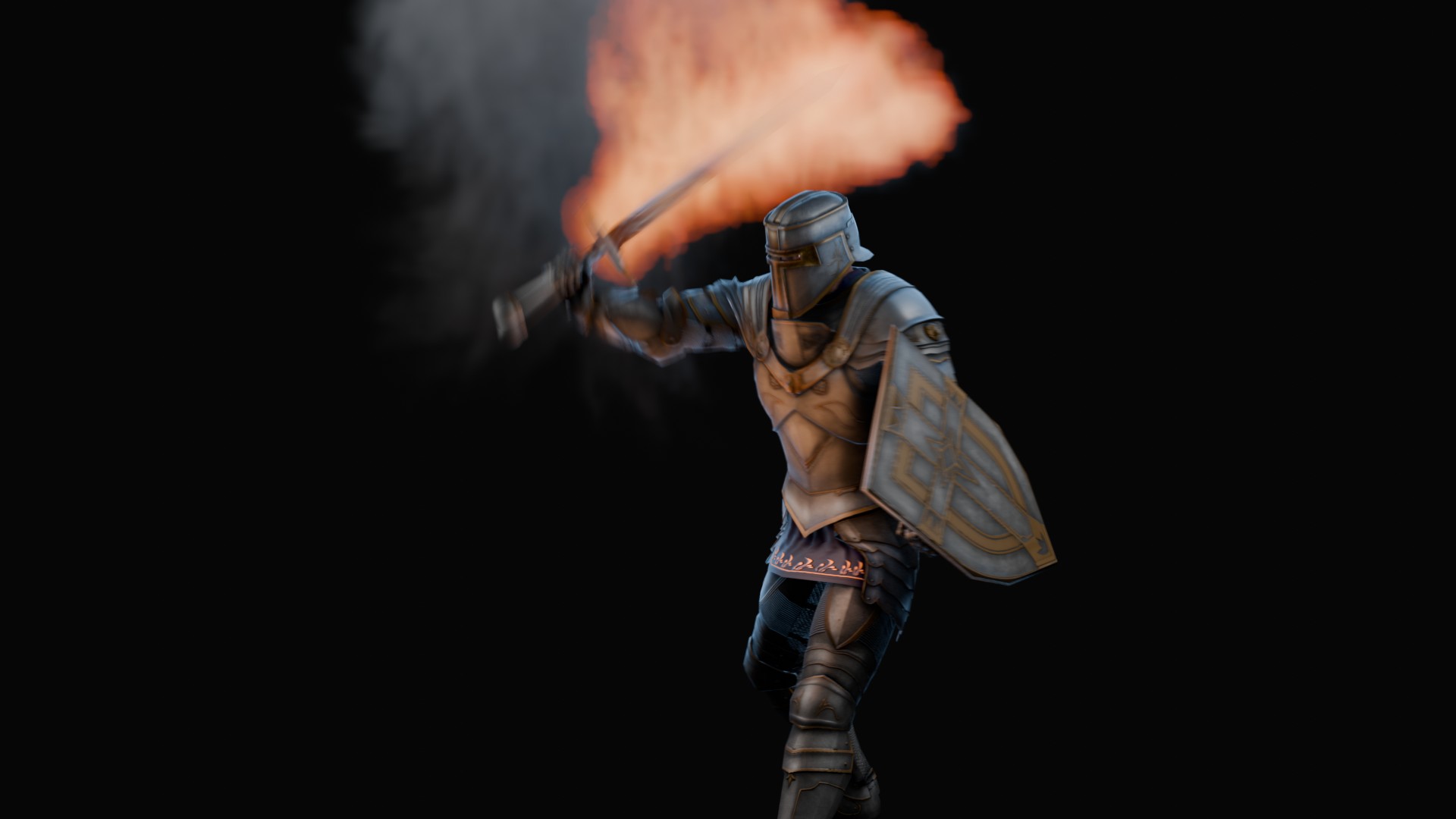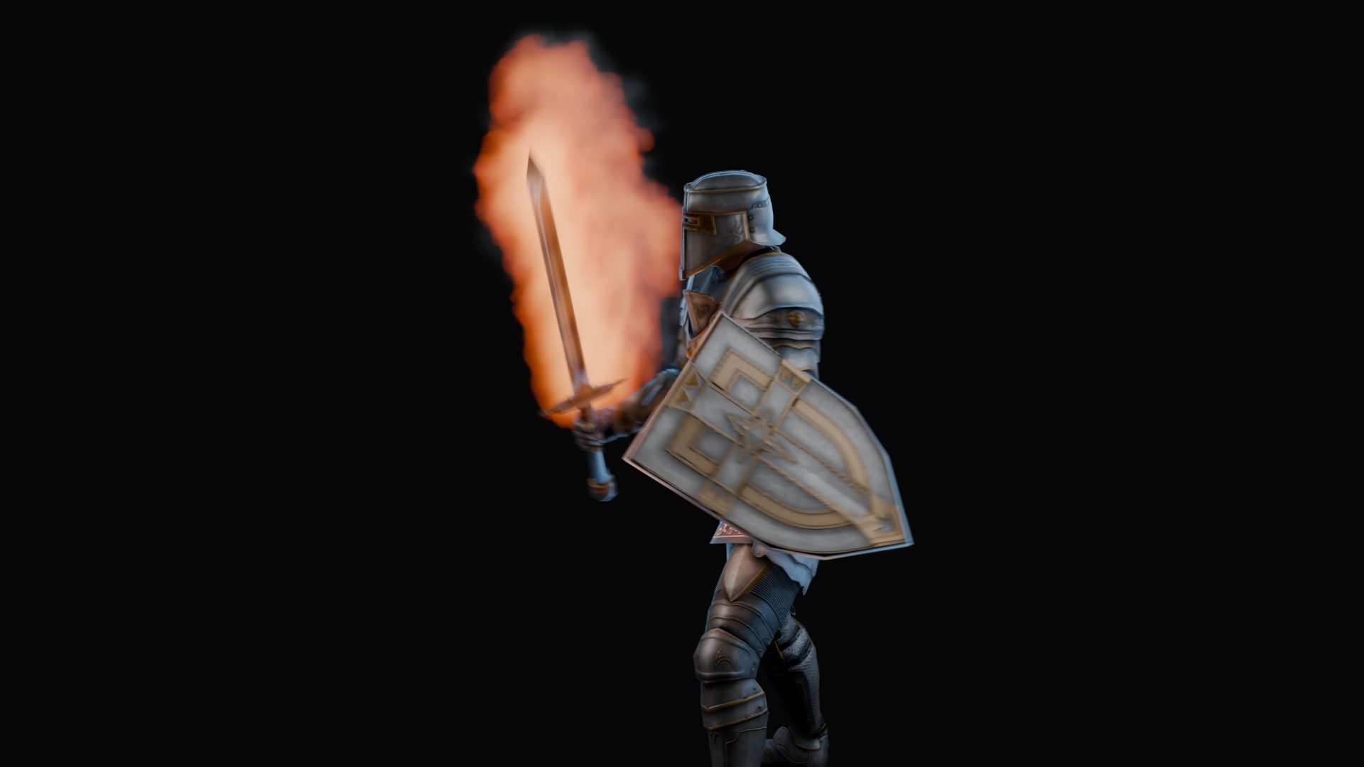 3D animation of flaming sword, 3d model created using a blender, content includes: