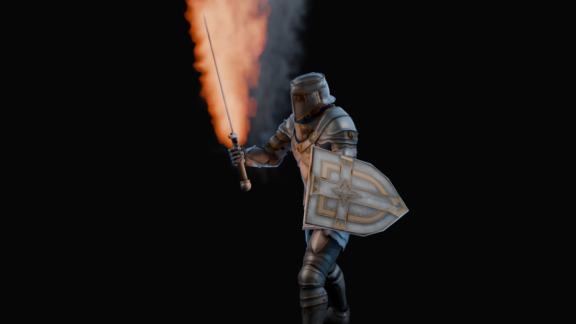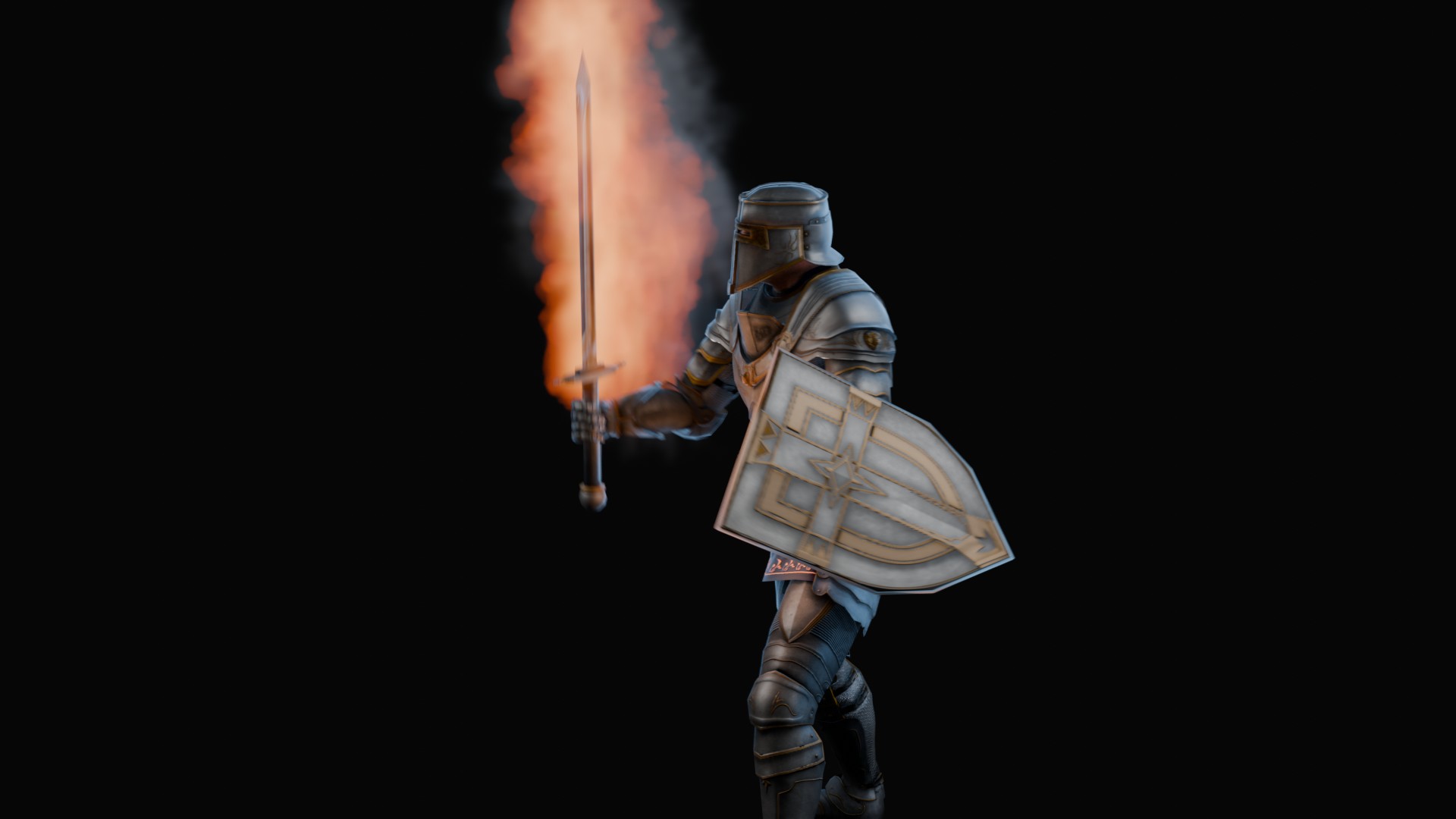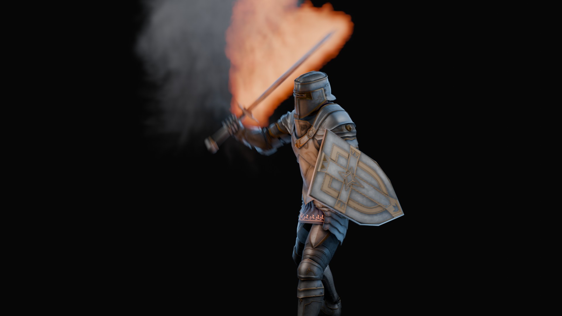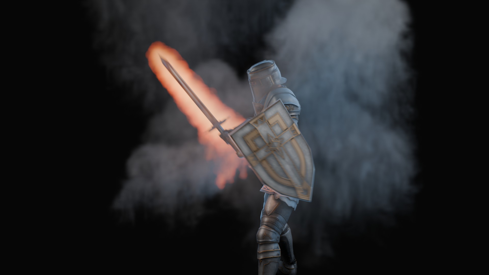 3D animation of flaming sword, 3d model created using a blender, content includes: