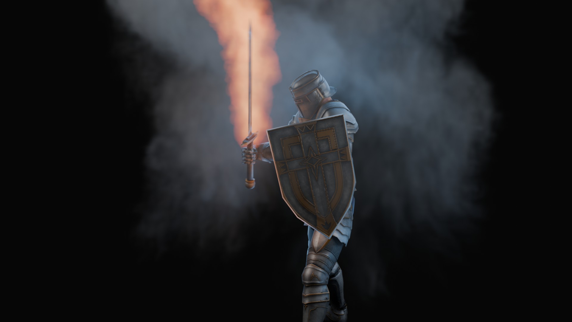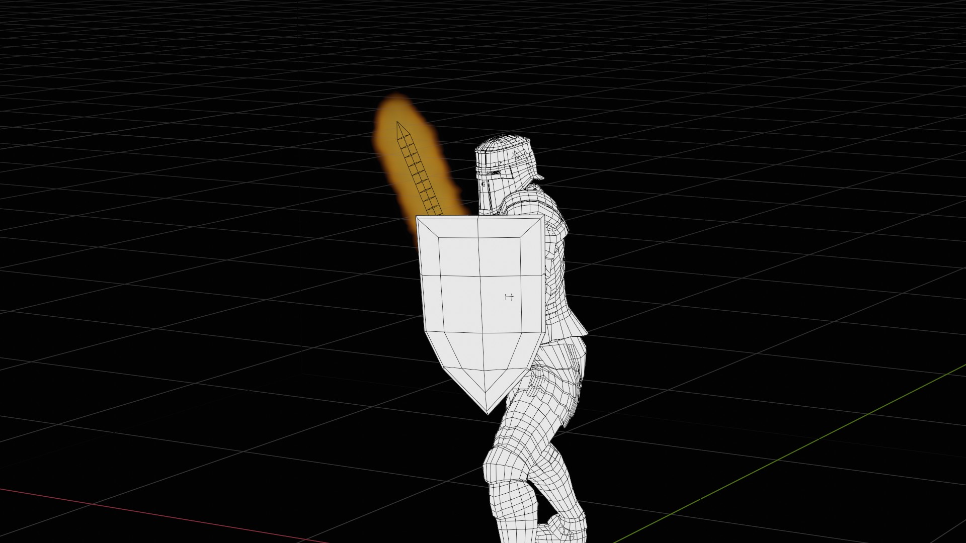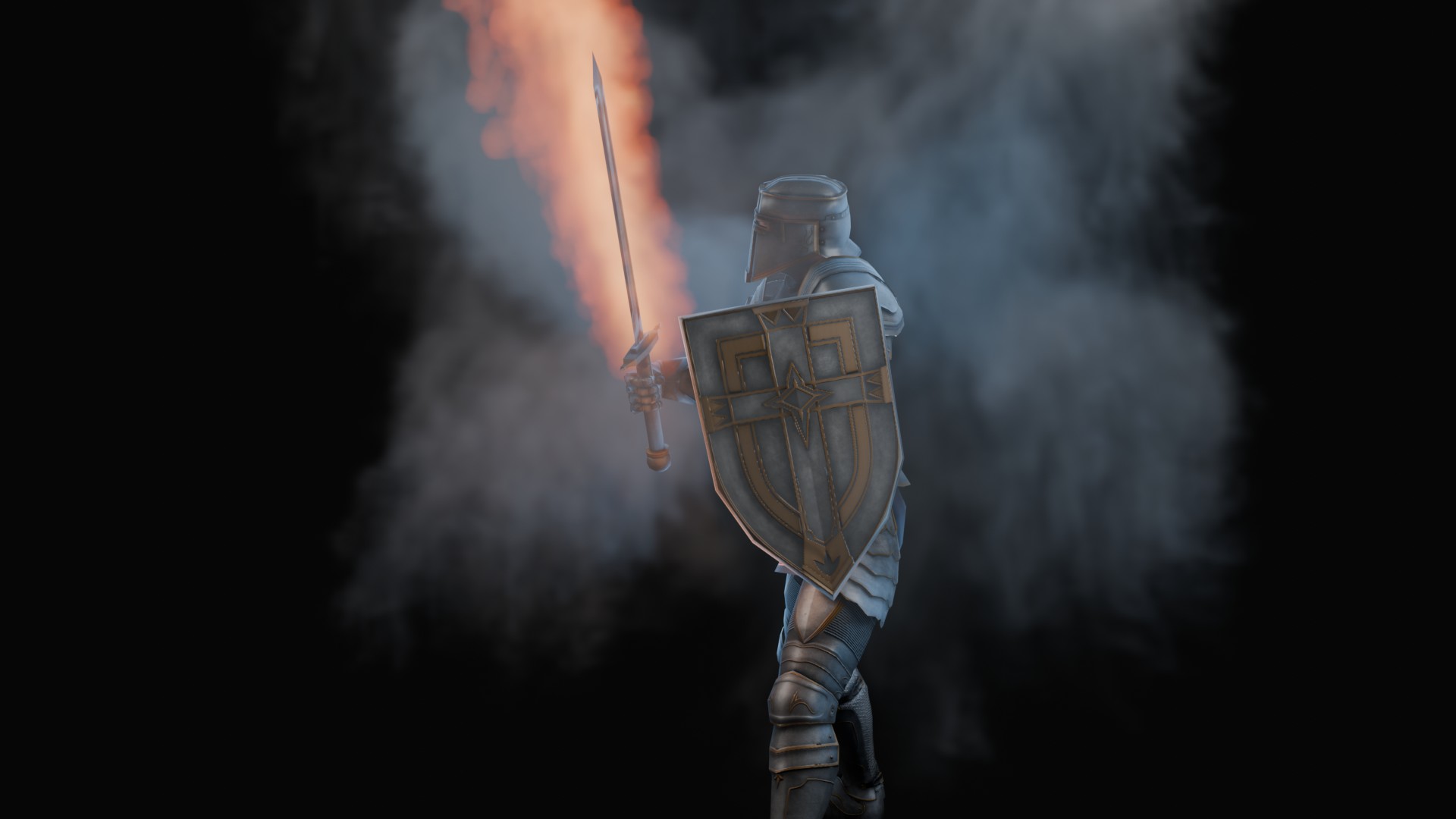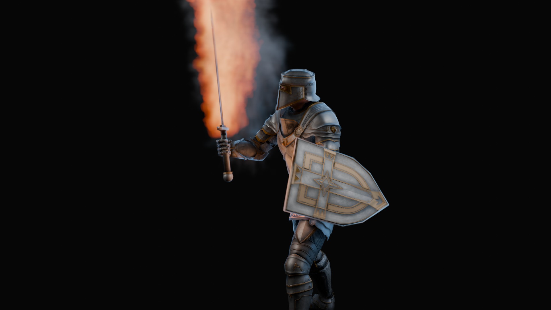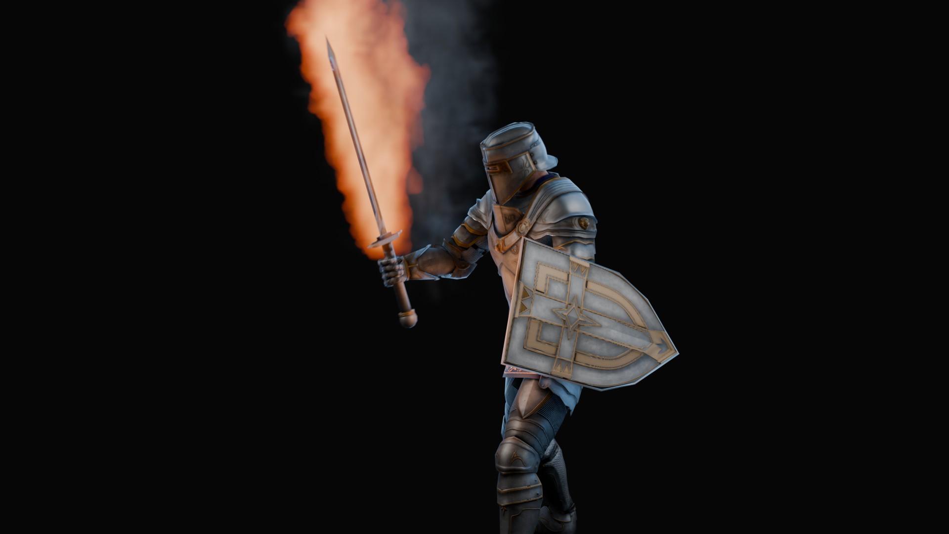 3D animation of flaming sword, 3d model created using a blender, content includes: