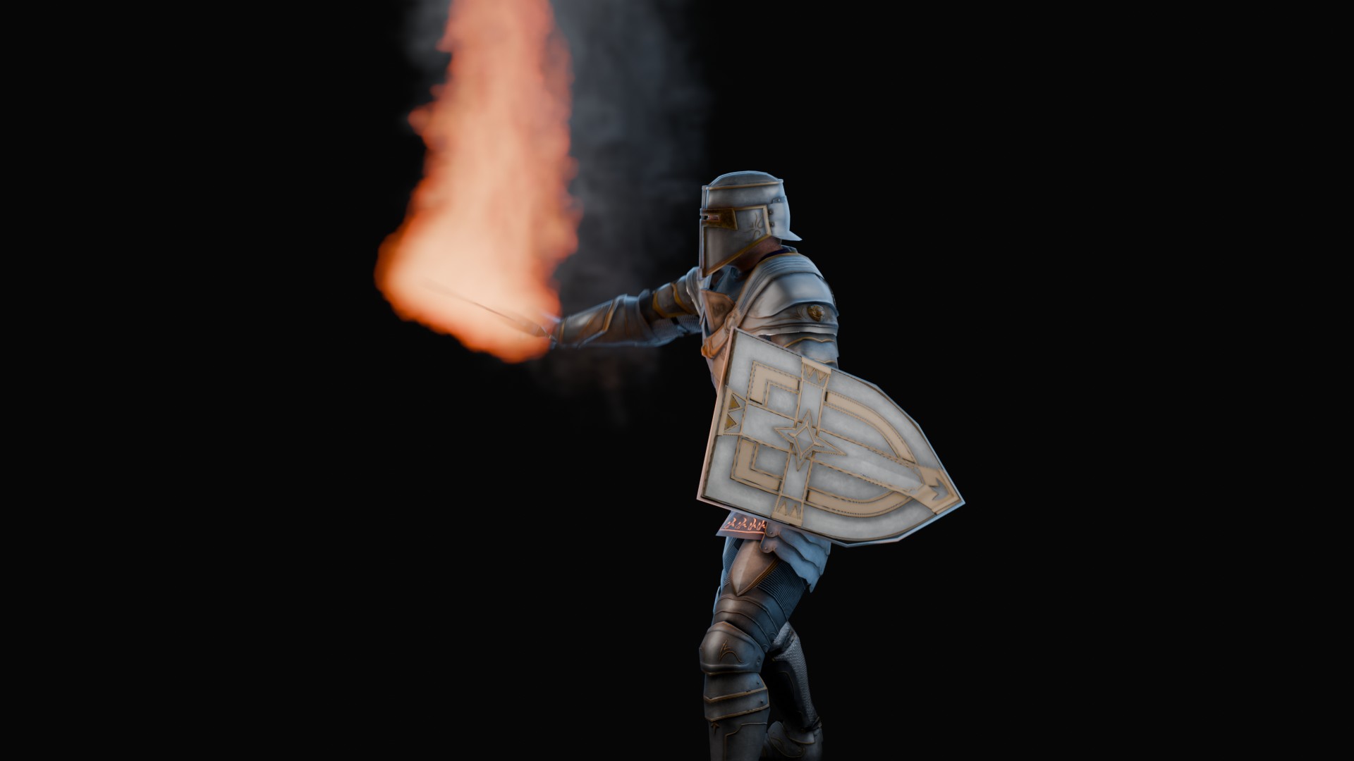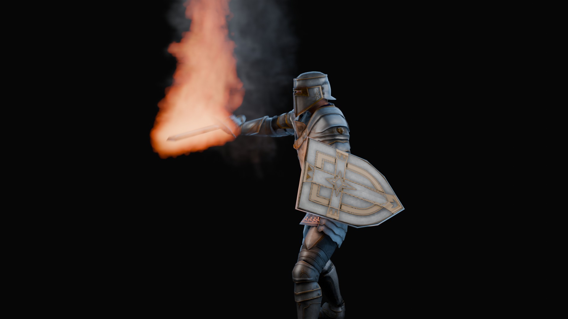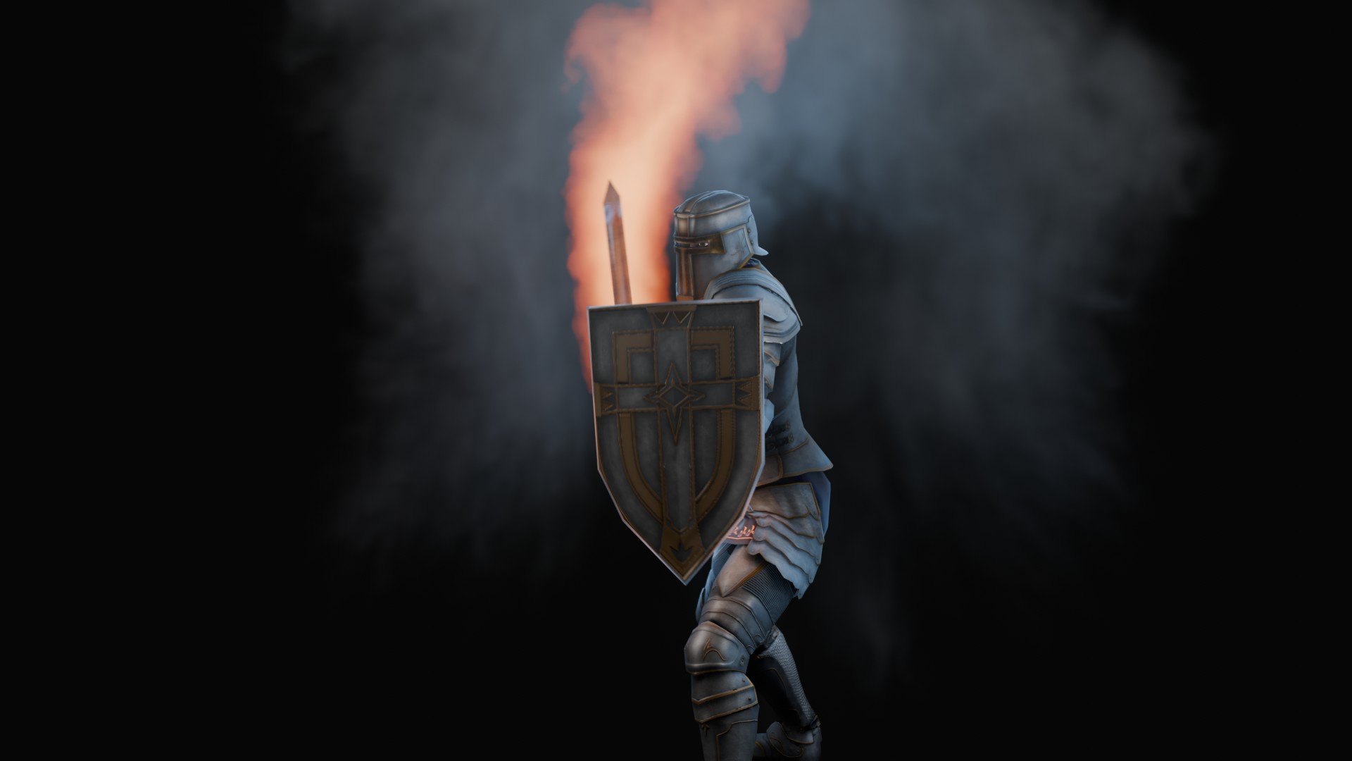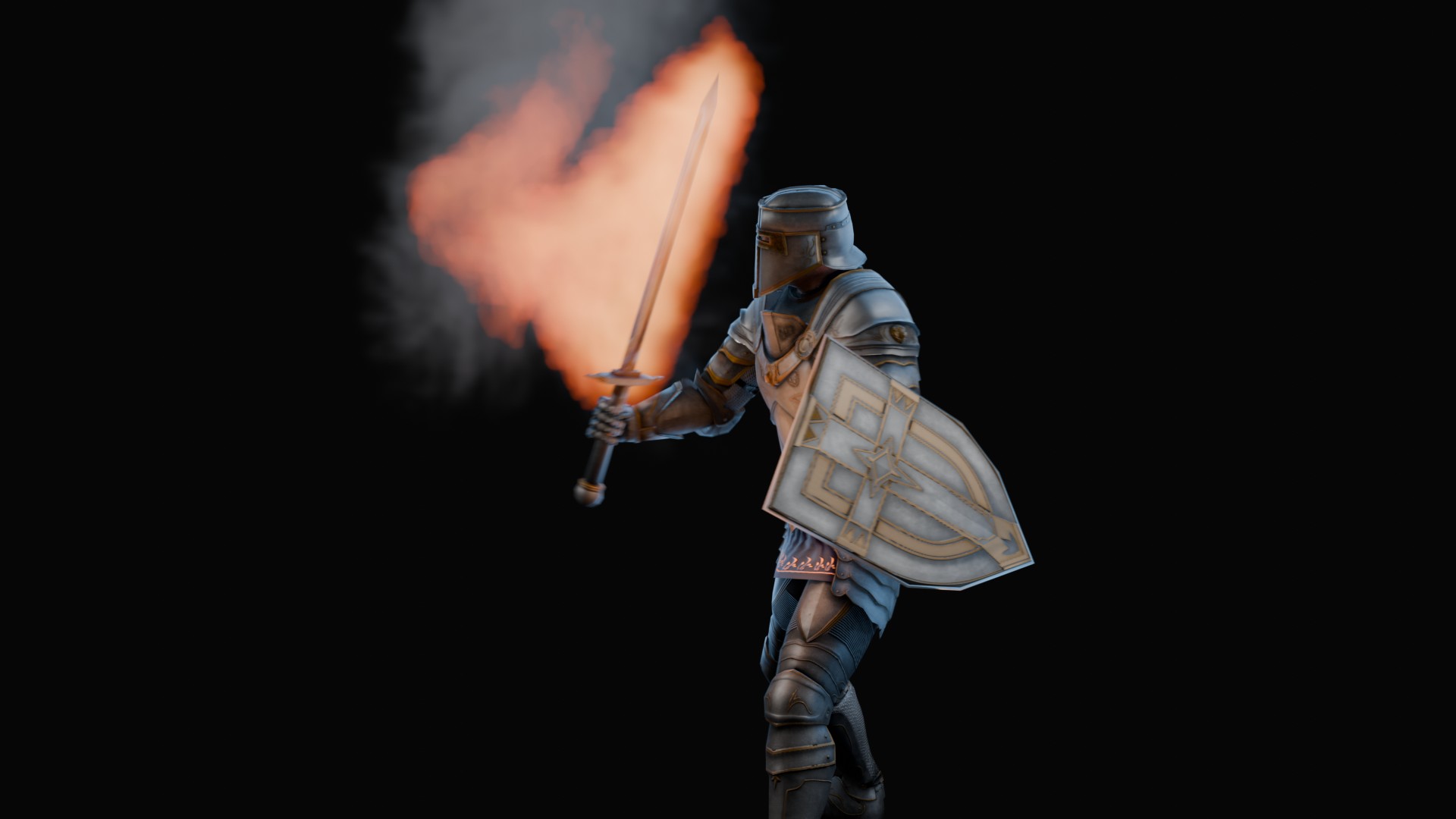 3D animation of flaming sword, 3d model created using a blender, content includes: