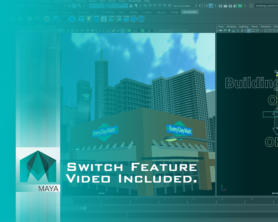 =BUILDING SWITCH= This scene comes with a Light Switch: Able to control intensity of Lights and Glow of the scenes buildings, light post, signs etc.