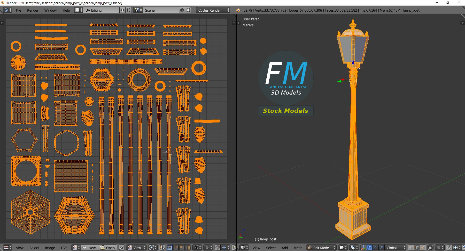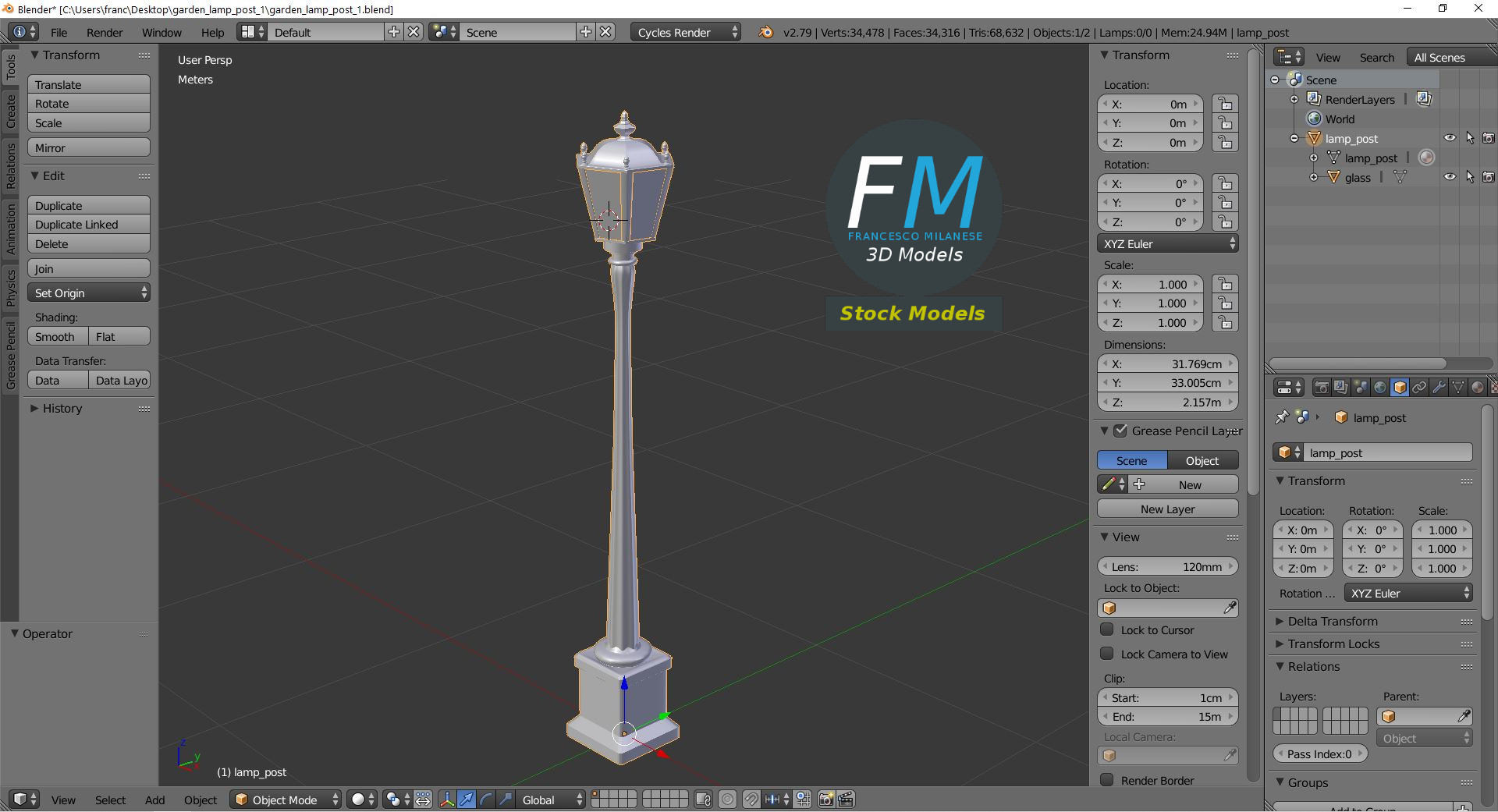 Garden lamp post 3D Model, nr. 1 in my collection. 2 individual objects (lamp post, glass), each one with its own non overlapping UV Layout map, Material and PBR Textures set. Production-ready 3D Model, with PBR materials, textures, non overlapping UV Layout map provided in the package.