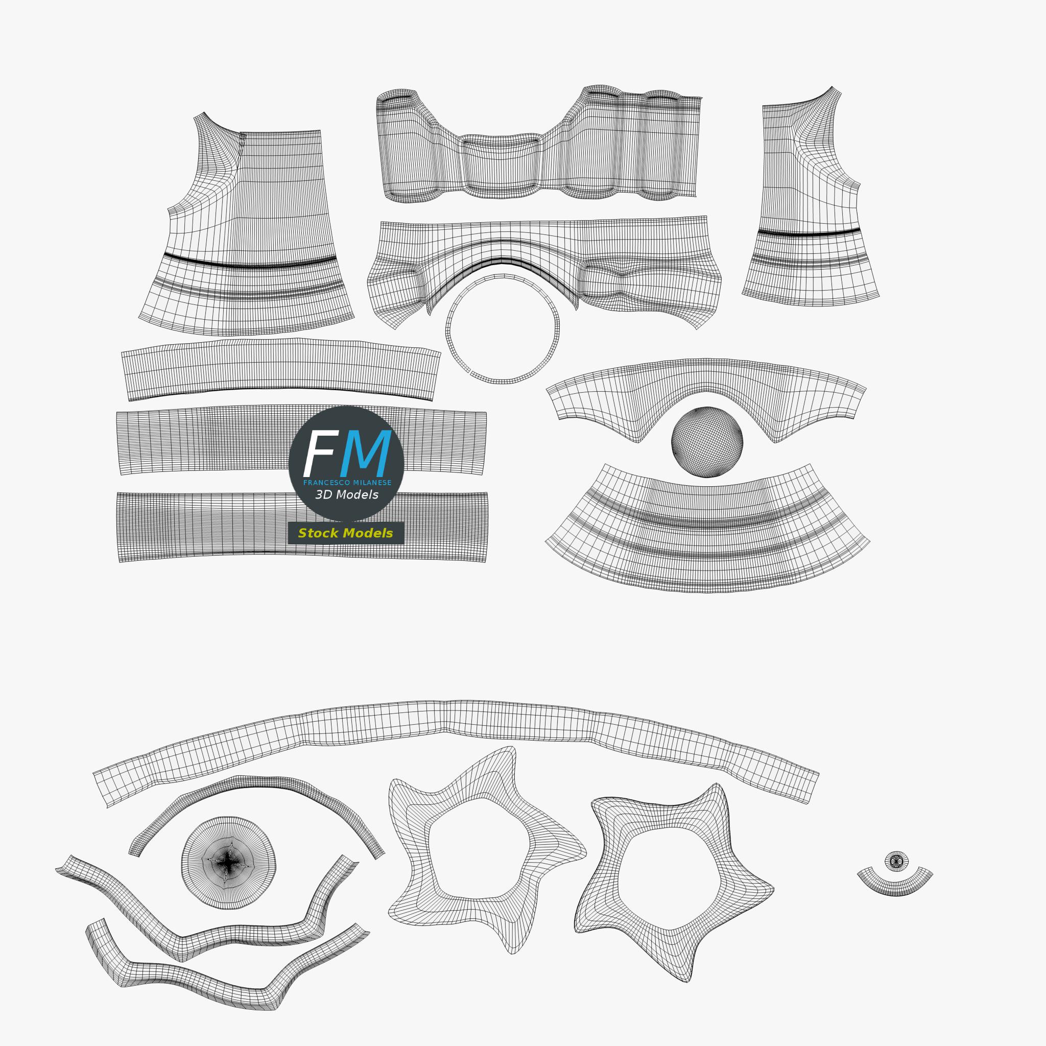 Easily customizable: UV unwrapped geometries, so you can create new Textures (or modify the existing ones) using the UV Layout maps provided in the package (as png with alpha).