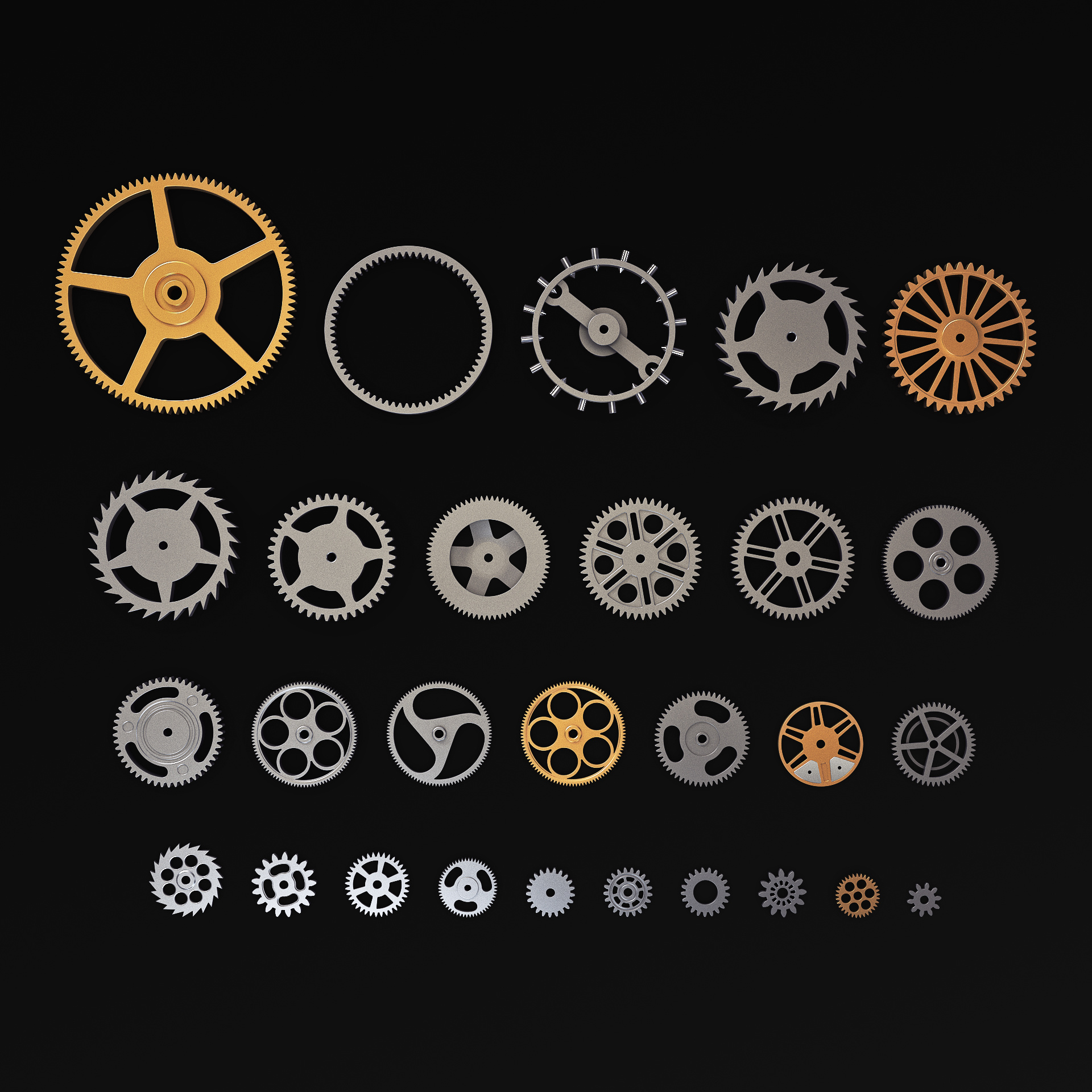 High quality model ‘Gears Set v 3’ specially for your projects. Quality and accurate modeling, allows you to use model in any projects. Elaborated all small details, make the model more realistic, allowing you to use a model in high-resolution renderers (close-up), as well as for creating videos, or video advertising or use in the film industry. The model is created in Autodesk 3ds Max 2020, rendered with V-Ray Next 4.20.00 Please don’t forget to rate the model, for us it is very important