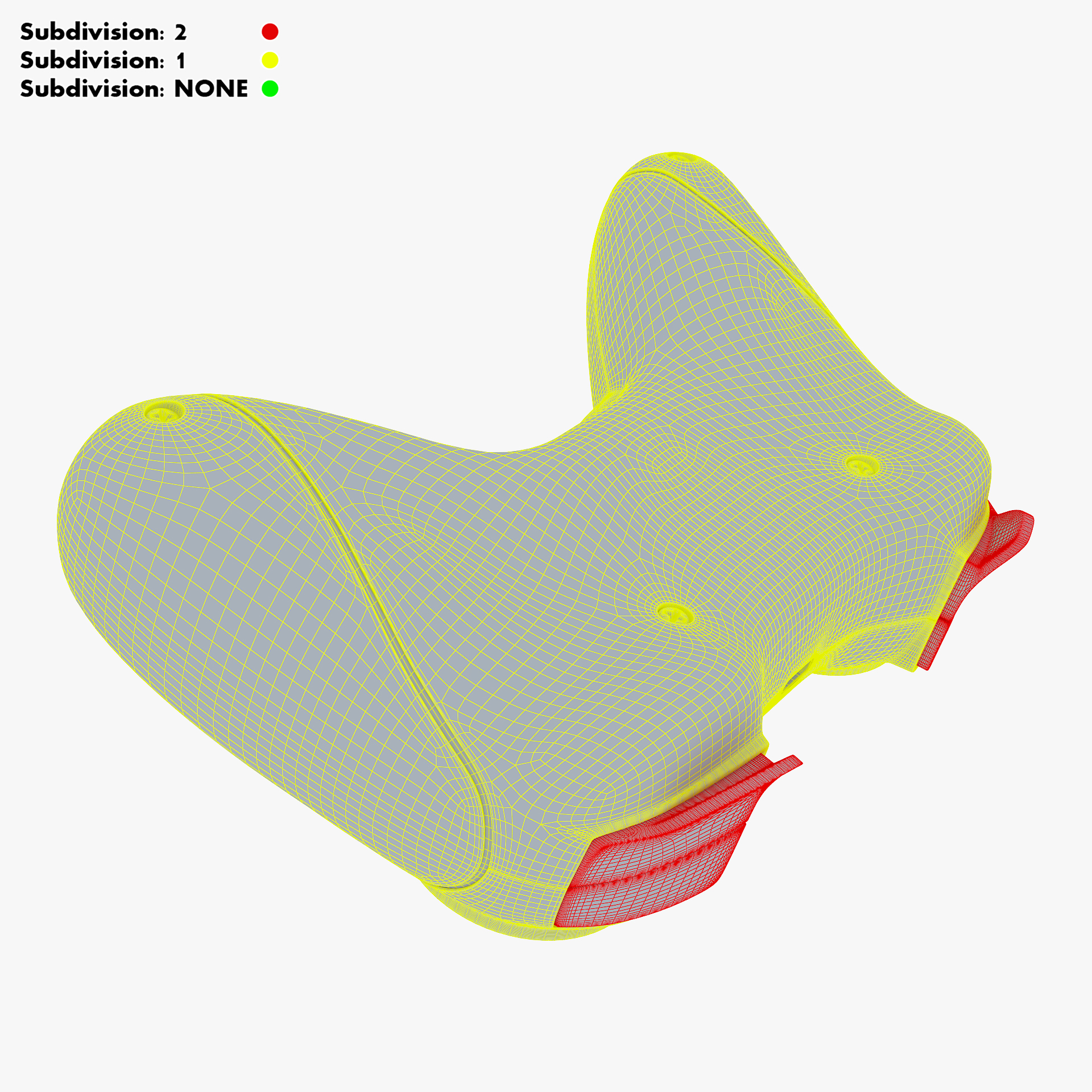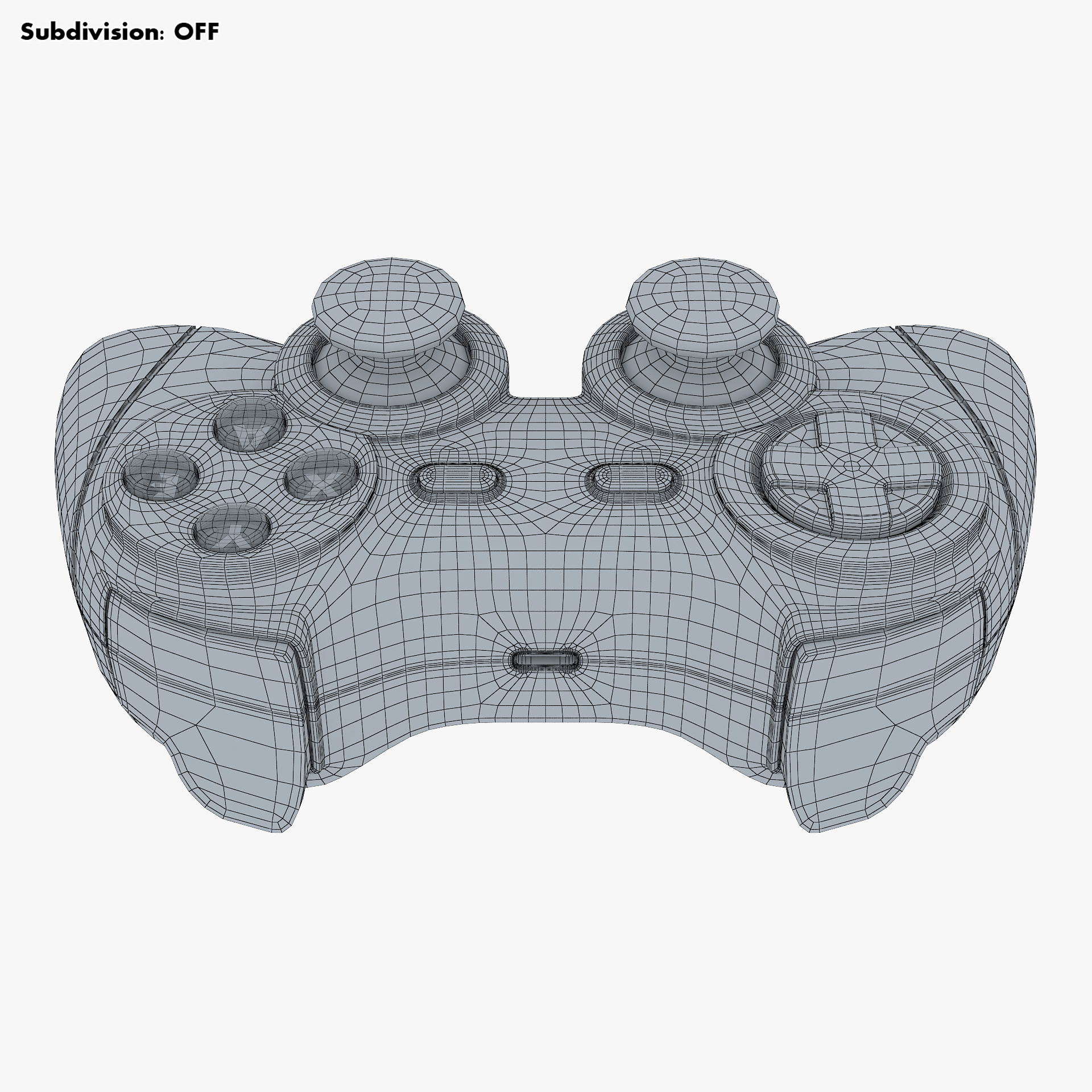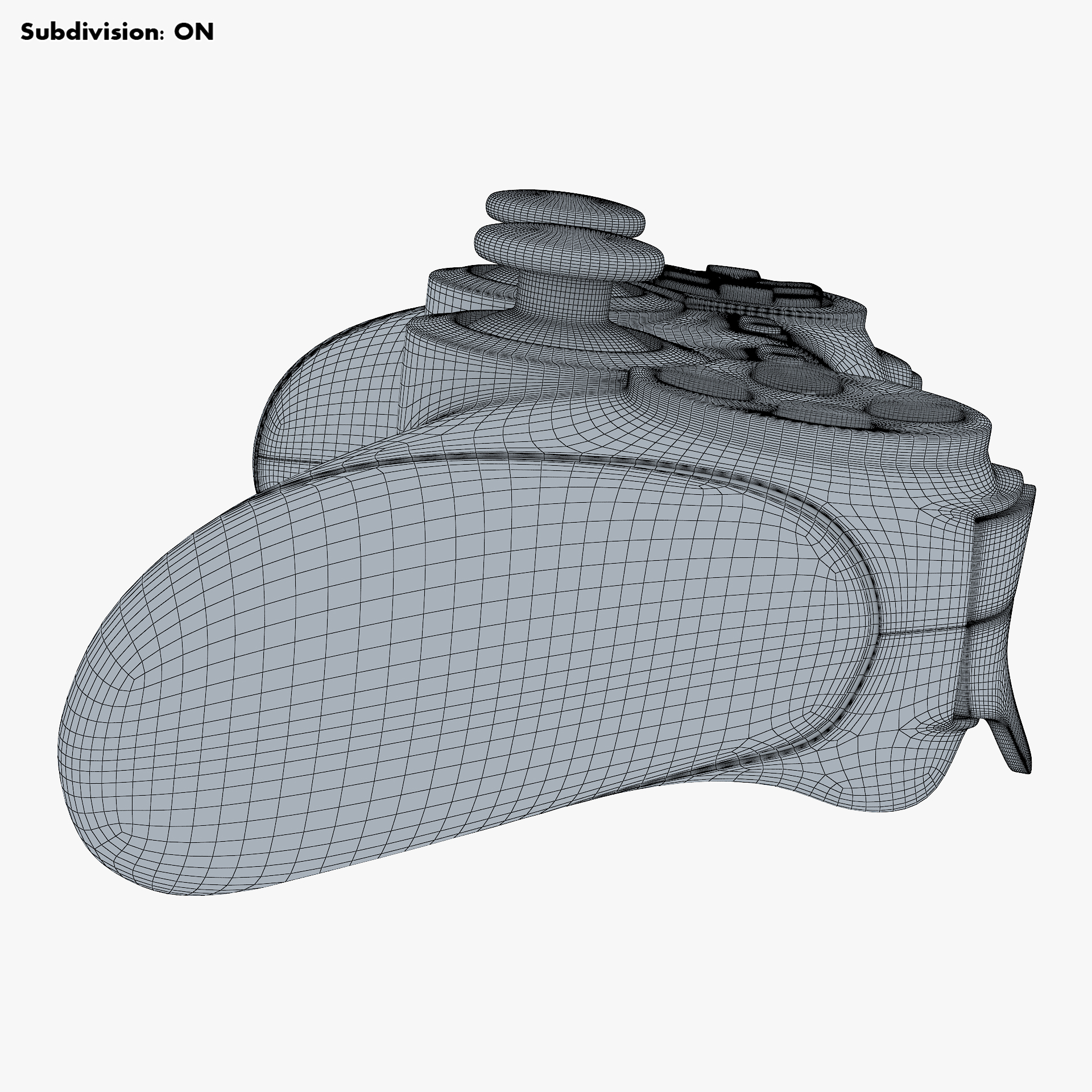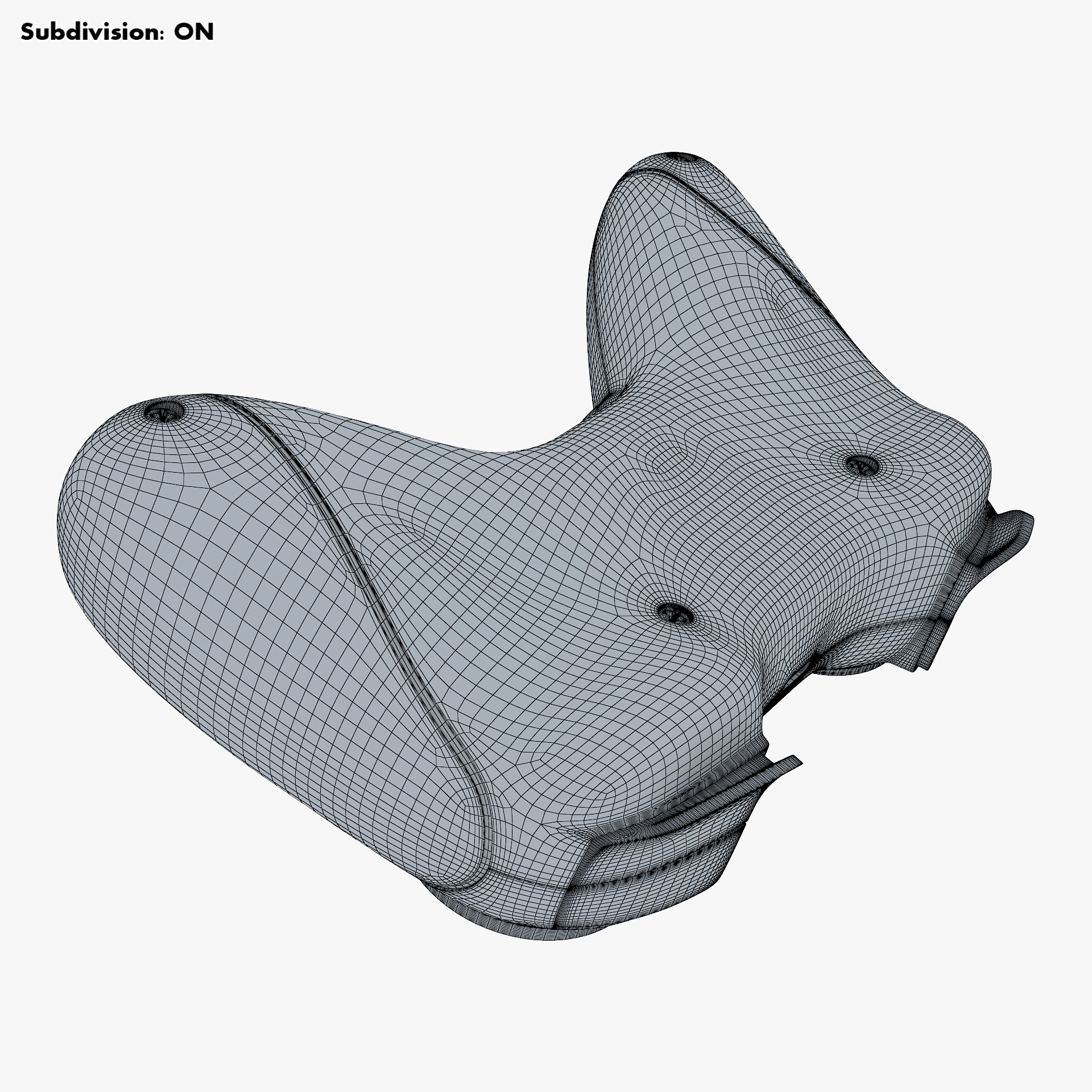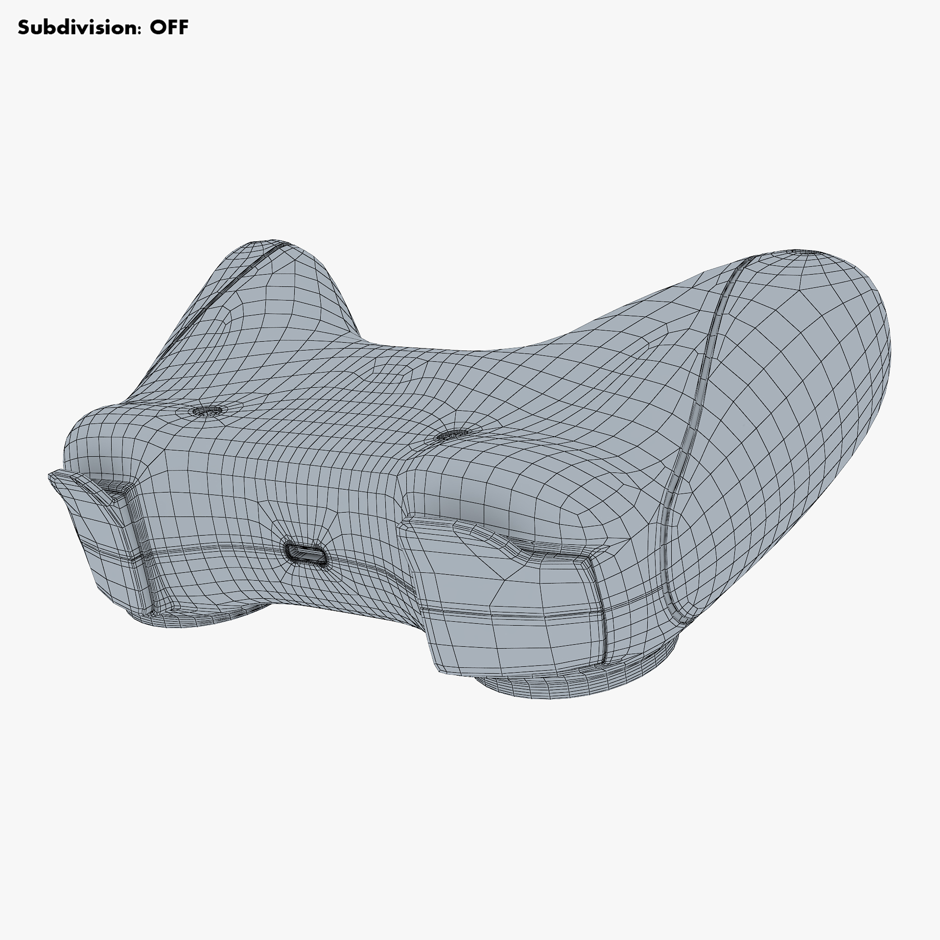 - Subdivision OFF: – Polys: 17 702 – Tris: 35 365 – Edges: 36 356 – Verts: 18 684