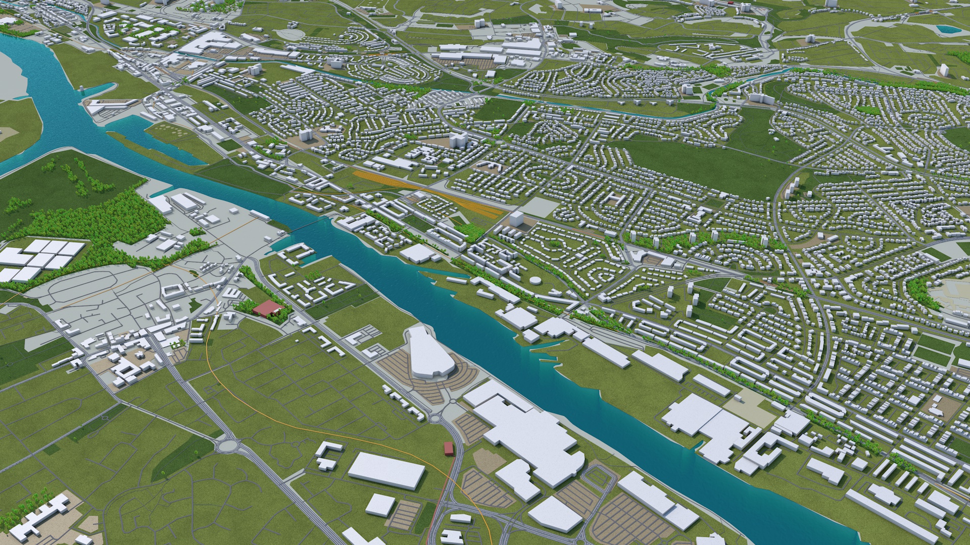 – Accurate 3D city model and its surrounding area based on GIS data Year 2020 – Size: 80 km – Made in cinema 4d, Ready to render – Building stroke used in cinema 4d with sketch and toon effect – Trees (mograph cloner), Water Effect and Stroked Roads are only in cinema 4d file – Render in standard settings – No Plugins used – Low Poly – Model is based on GIS data year 2020 – Base Satellite and map texture is included – Royalty free model – Polygons: 5m+ in big cities – Layers: Building, roads, routes, amenity, leisure, landuse, natural, water, man made, railway/train, aeroway etc. – Formats: C4d(Native), 3ds, stl, fbx and obj. FORMATS INCLUDED:obj, fbx, 3ds, stl and c4d native format render ready. 1. Suitable for Games, Games, Education, Architecture etc. 2. Mainly used for town and urban planning, real estate etc