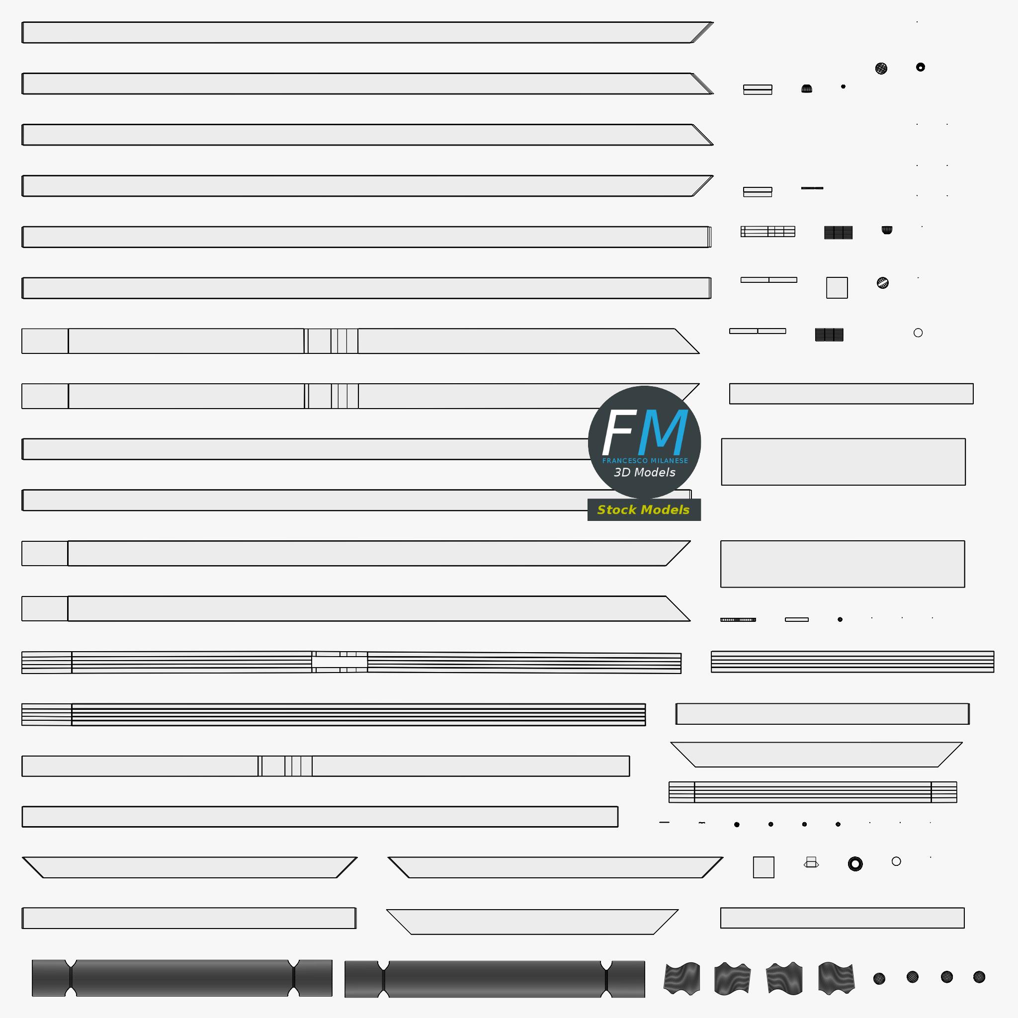 Easily customizable: UV unwrapped geometries; UV Layout maps provided in the package as png with alpha images.