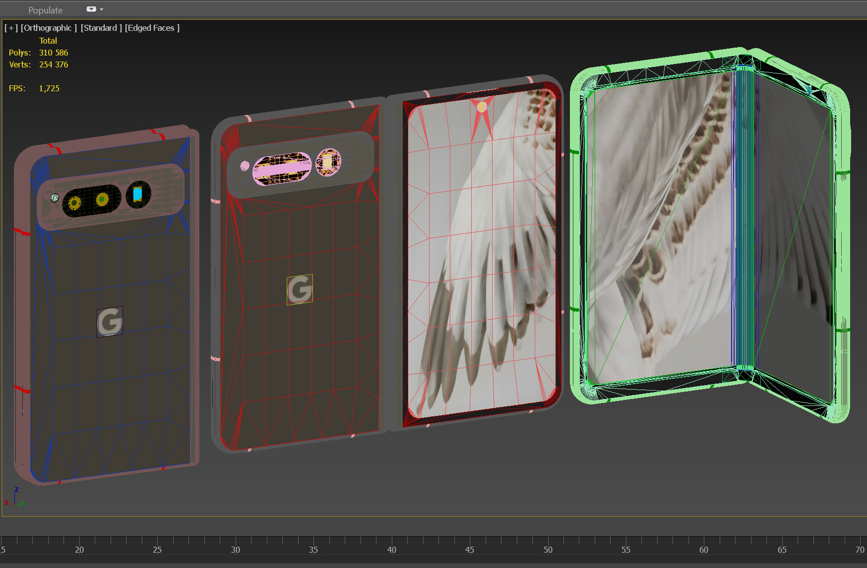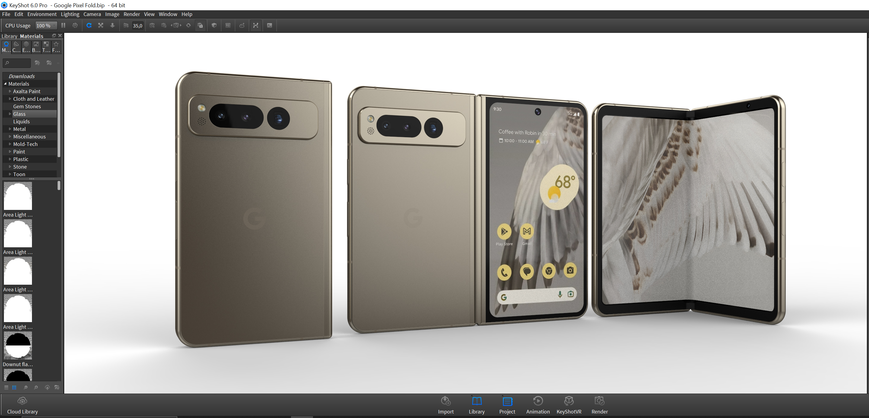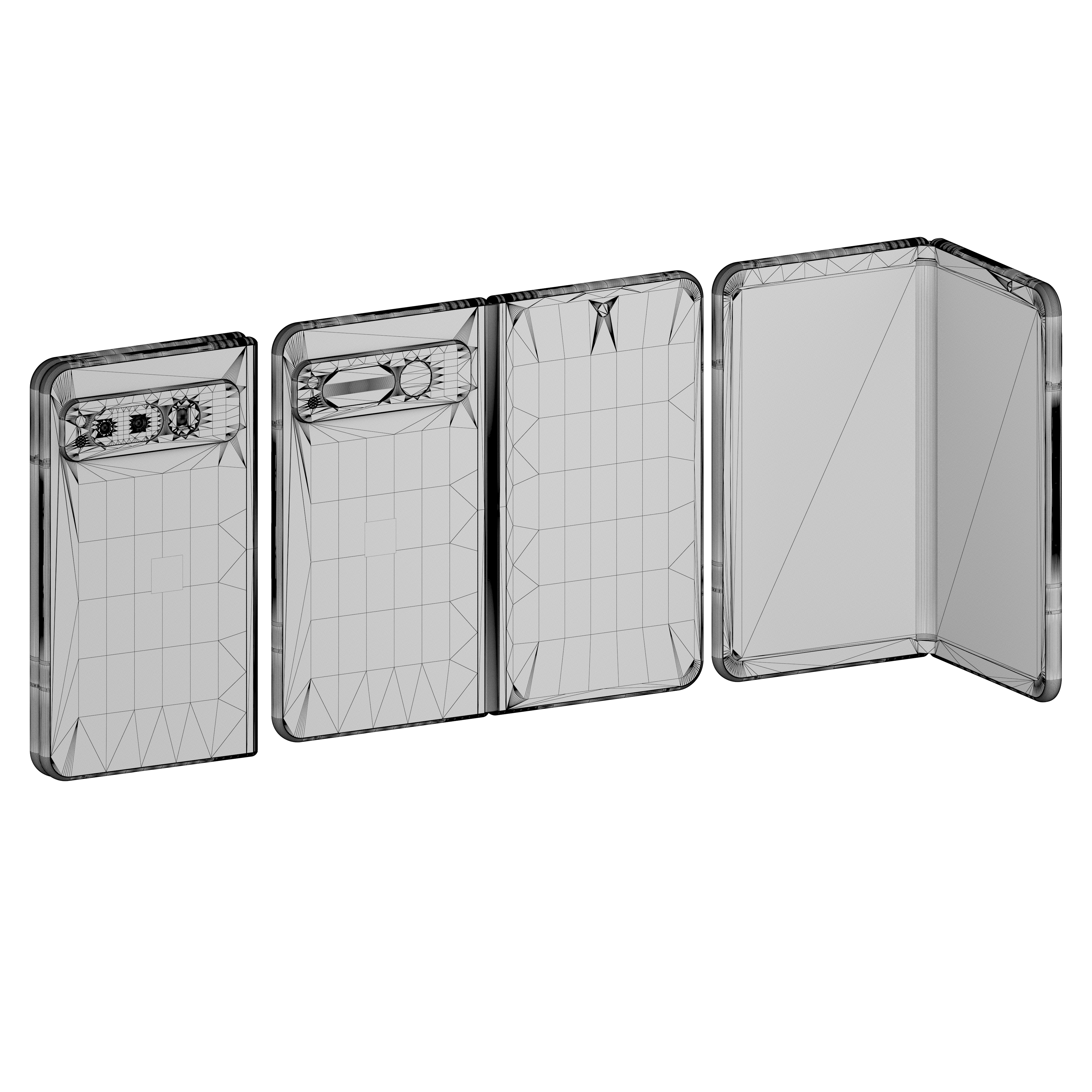 Smartphone Model Google Pixel Fold. The model is made in Rhino 7. The model is available in three versions, open, closed, semi-open. Materials are configured in Vray, Blender, Keyshot. The total number of polygons in the three models is 310586. Formats: Bip, Blender, Fbx, Iges, Ksp, Max 2017, Max 2020, Obj, Rhino 5, Rhino 7, Step.