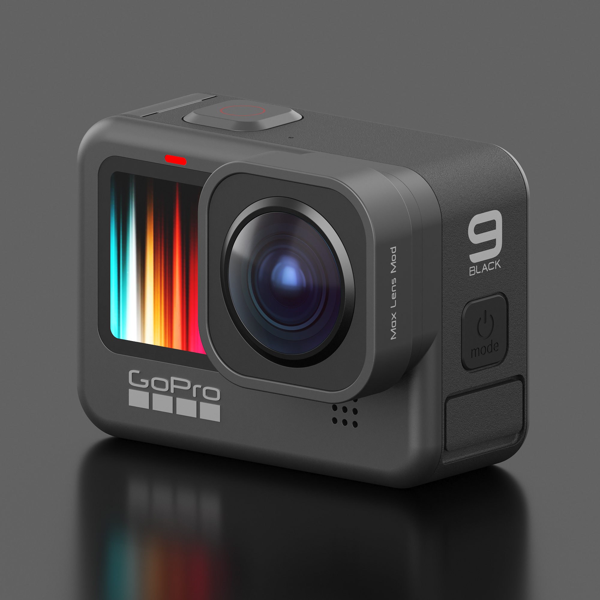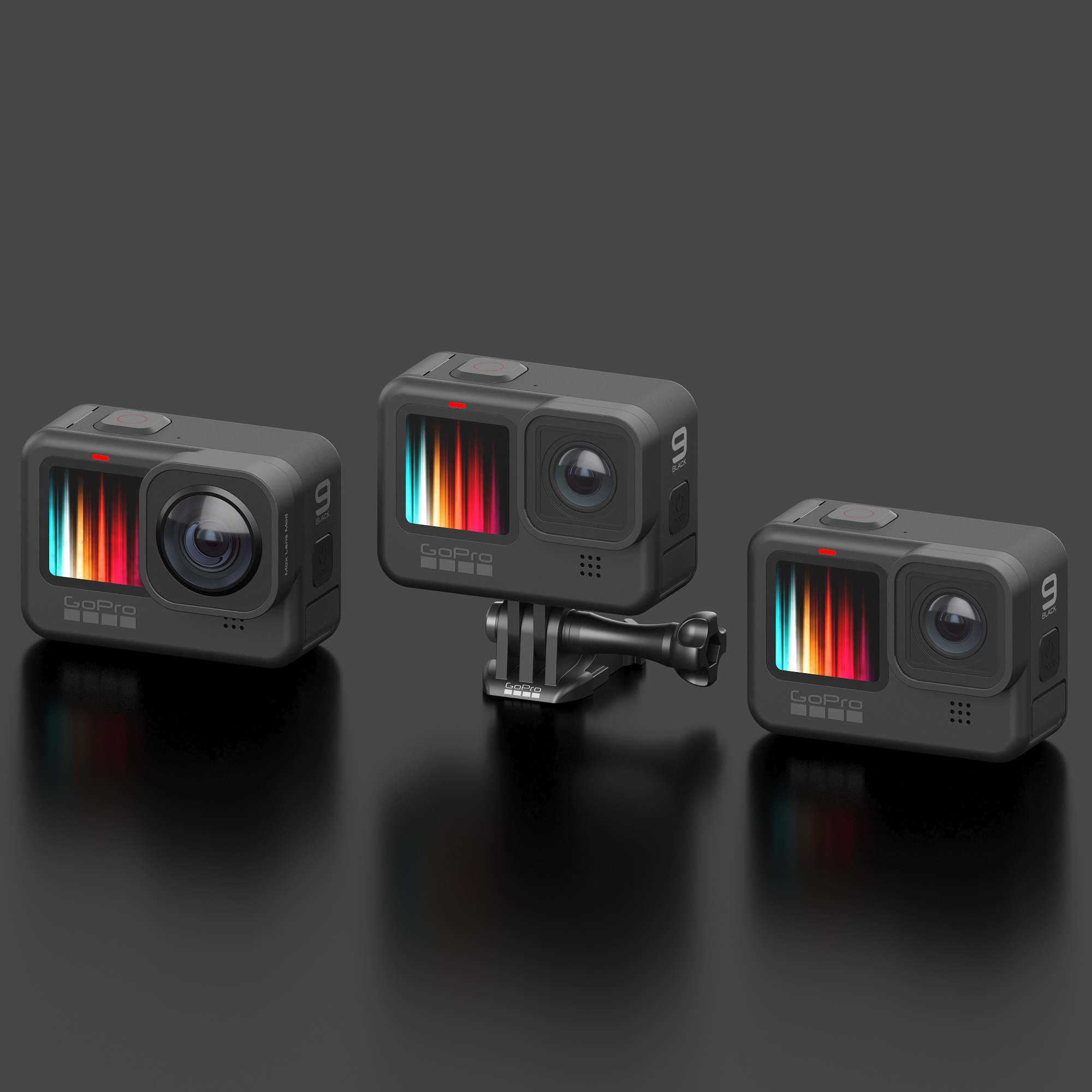 - Camera GoPro HERO 9 Set made in Rhino3d render in 3ds max + Vray. - Mount included. - Max Lens Mod included. - There are three versions in the files, with a mount and a wide-angle lens. - In 3d max scene with customized light and materials. - Element 3d added. - HDRI card included. - Formats: 3ds, max 2020, Max 2017, STEP, E3D, AEP, OBJ, FBX, 3dm, IGES, DAE