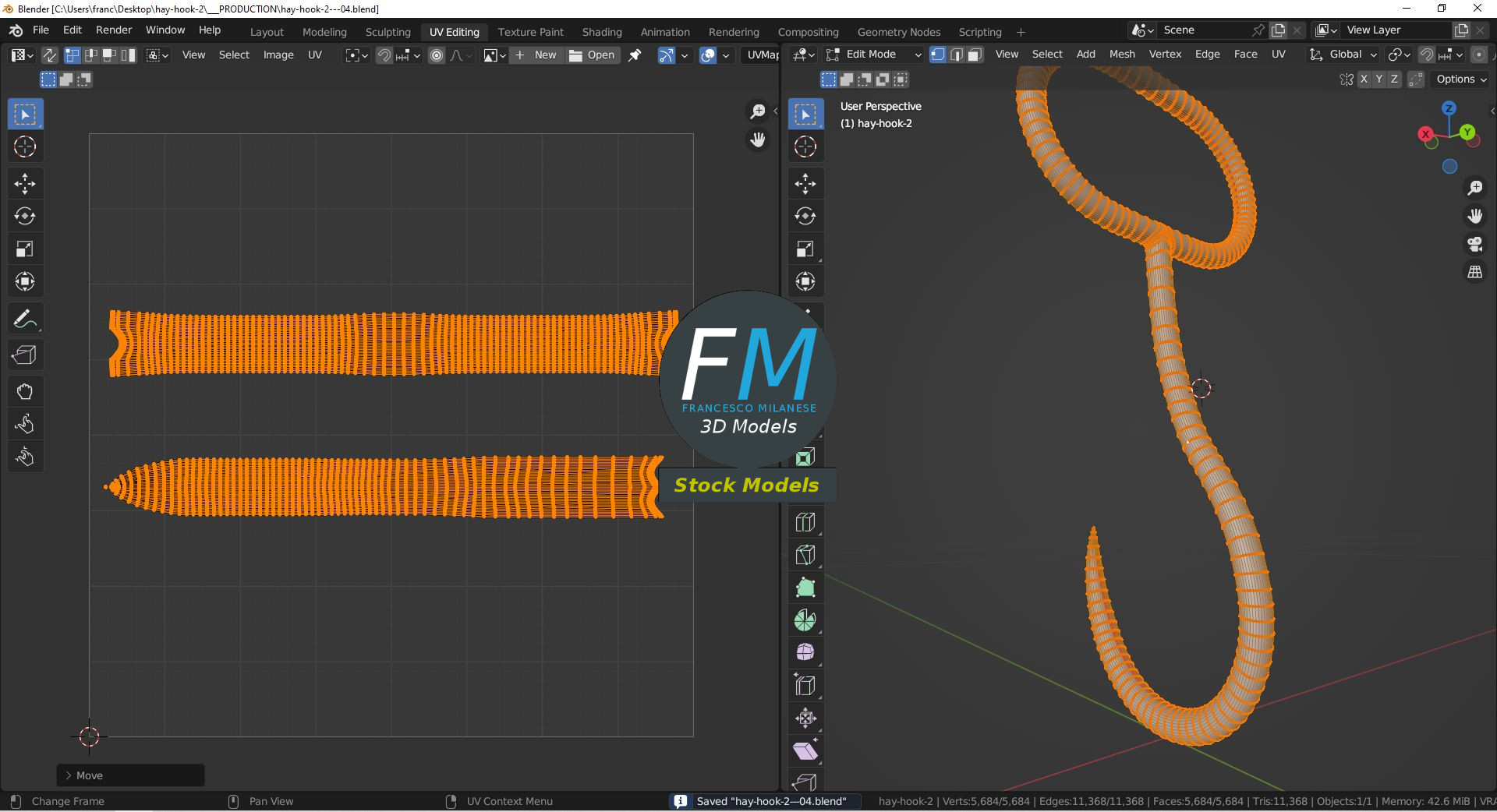Polygonal, QUADS ONLY (no tris/ngons); 5684 vertices, 5684 quad faces (11368 tris).