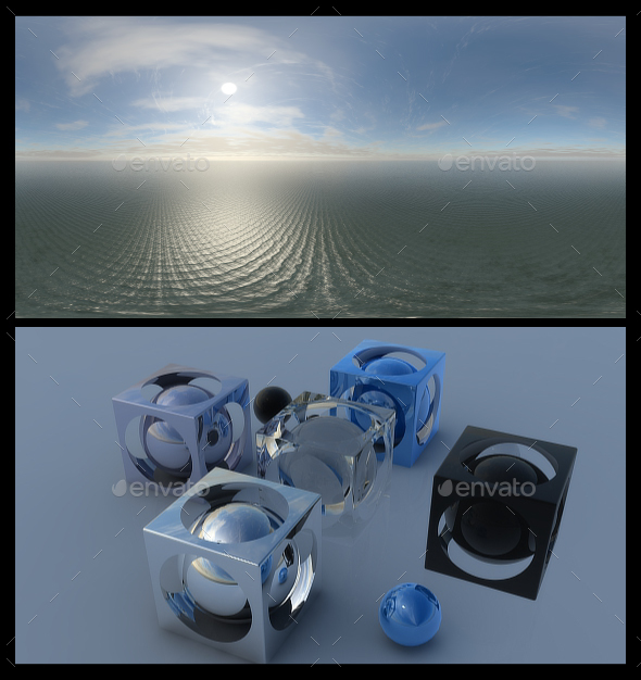 It includes five 6000×3000 pixels High Dynamic Range Images (HDRI) and five 3000×1500 pixels JPGs to be used as a reflection map.
