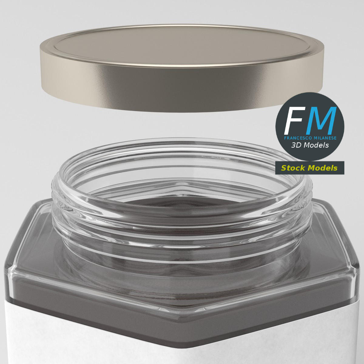 Hexagonal jam jar 3D Model. 4 individual objects (glass, jam, lid, label), each one with its own non overlapping UV Layout map, Material and PBR Textures set. Production-ready 3D Model, with PBR materials, textures, non overlapping UV Layout map provided in the package.