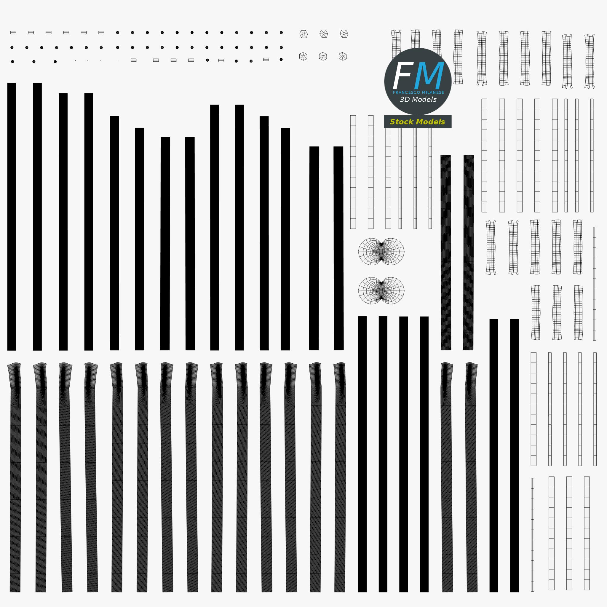 Easily customizable: UV unwrapped geometries, so you can create new Textures (or modify the existing ones) using the UV Layout maps provided in the package (as png with alpha).