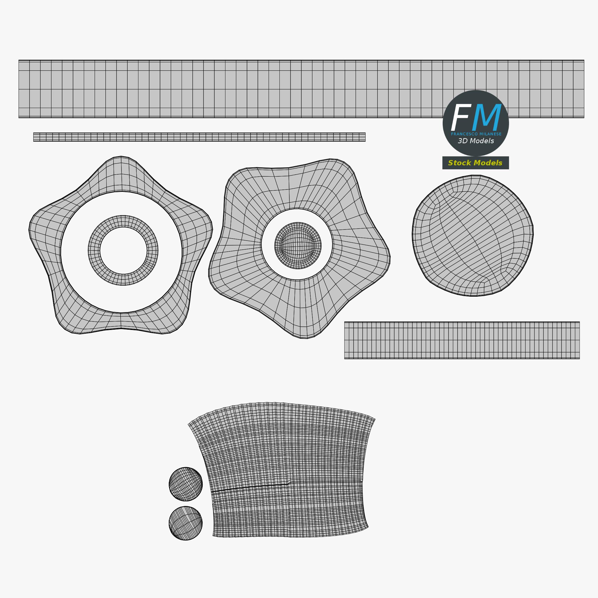 Easily customizable: UV unwrapped geometries, so you can create new Textures (or modify the existing ones) using the UV Layout maps provided in the package (as png with alpha).