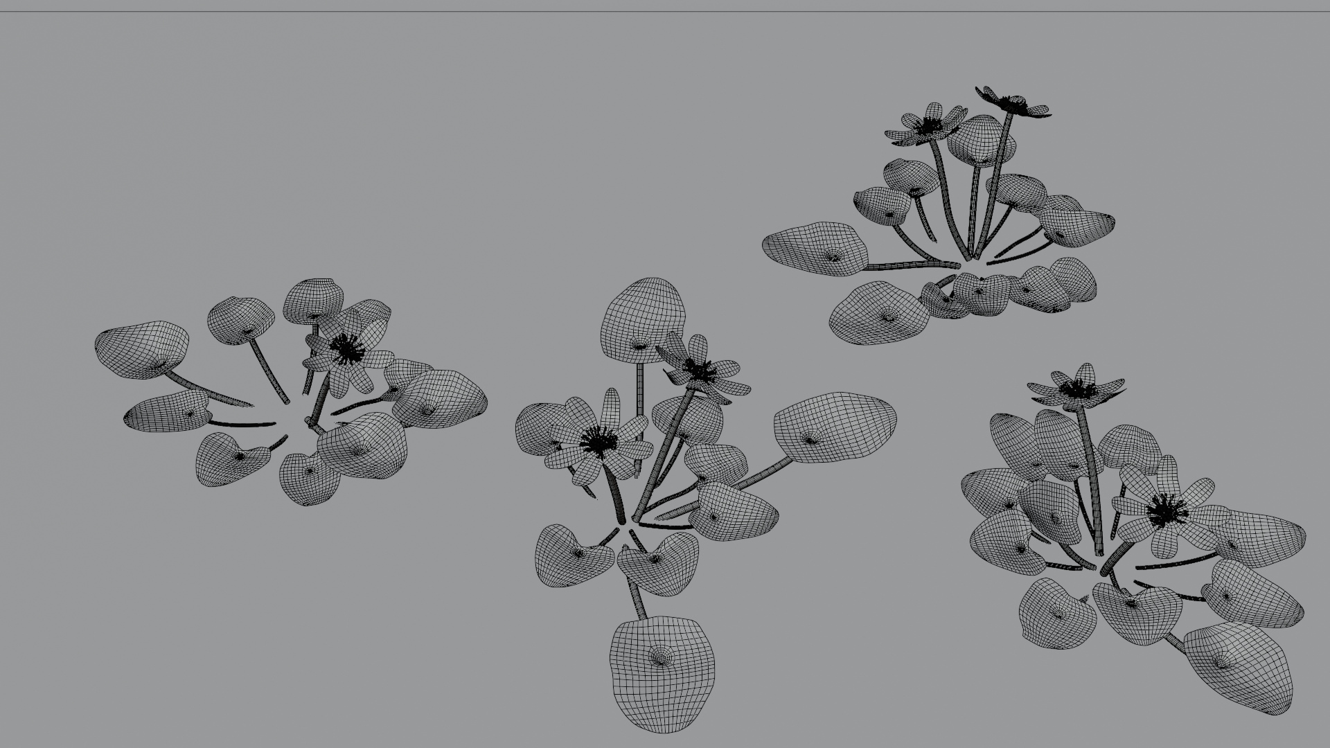 Model of Lesser celandine. File contains four variations of the flower plus lanes with simple grass and terrain created with Blender Geometry nodes system. Mesh consists of quads only.