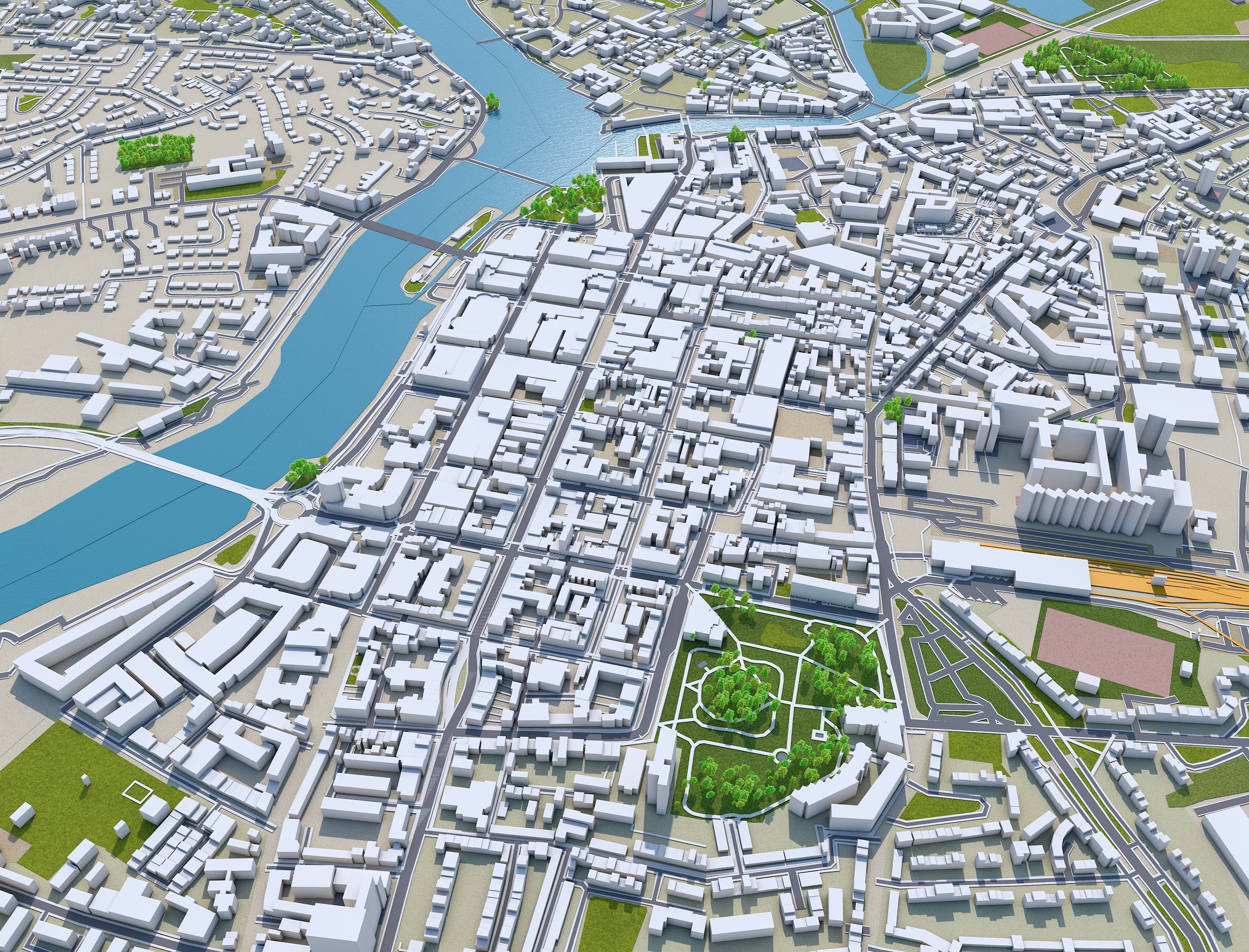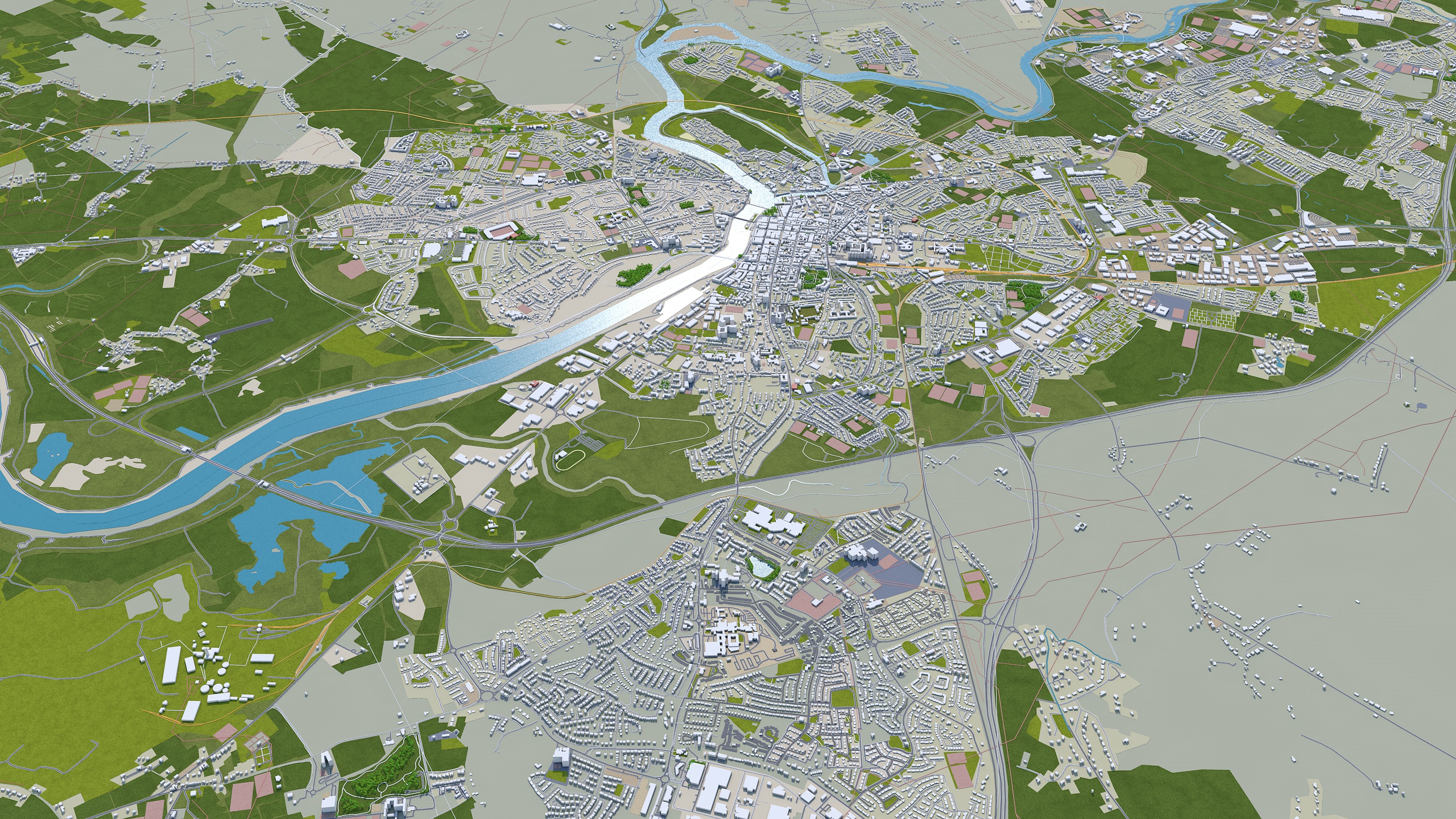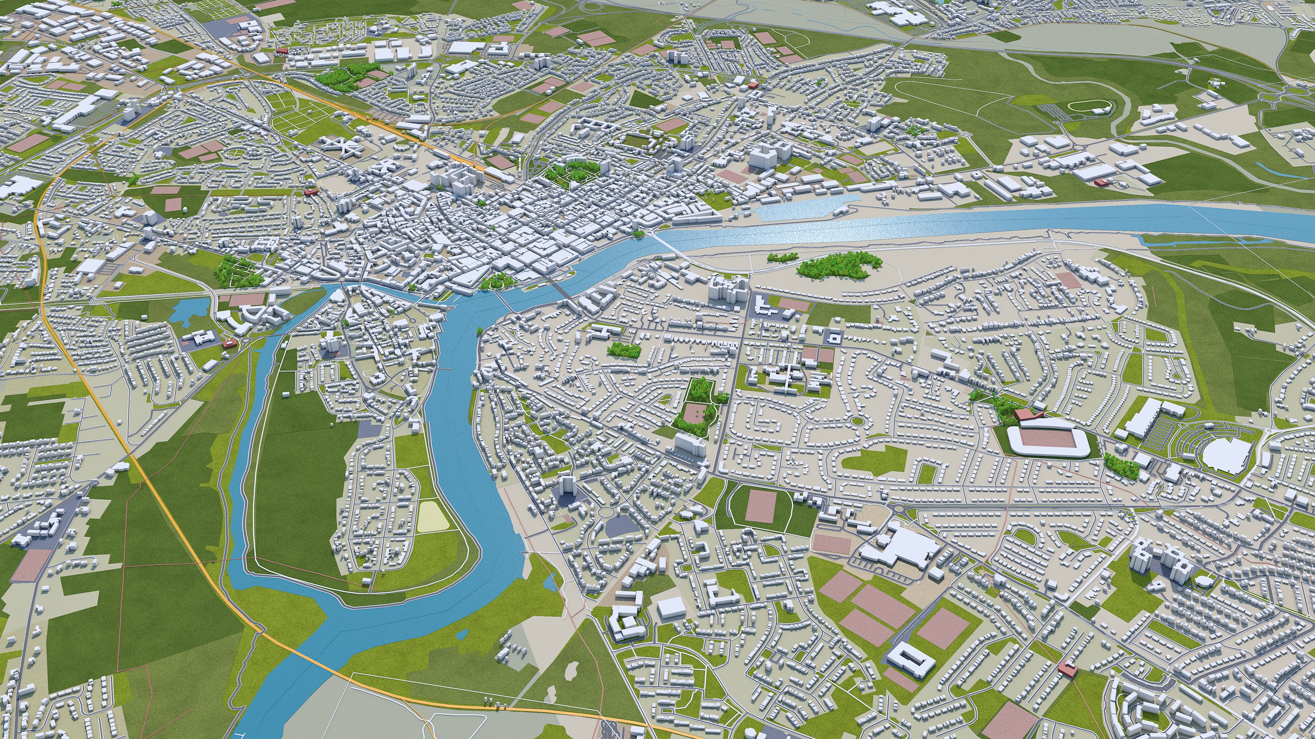 – Accurate 3D city model and its surrounding area based on GIS data Year 2021 – Size: 40 km – Made in cinema 4d, Ready to render – Building stroke used in cinema 4d with sketch and toon effect – Trees (mograph cloner), Water Effect and Stroked Roads are only in cinema 4d file – Render in standard settings – No Plugins used – Low Poly – Base Satellite and map texture is included – Royalty free model – Polygons: 5m+ in big cities – Layers: Building, roads, routes, amenity, leisure, landuse, natural, water, man made, railway/train, aeroway etc. – Formats: C4d(Native), 3ds, stl, fbx and obj. FORMATS INCLUDED:obj, fbx, 3ds, stl and c4d native format render ready. 1. Suitable for Games, Games, Education, Architecture etc. 2. Mainly used for town and urban planning, real estate etc