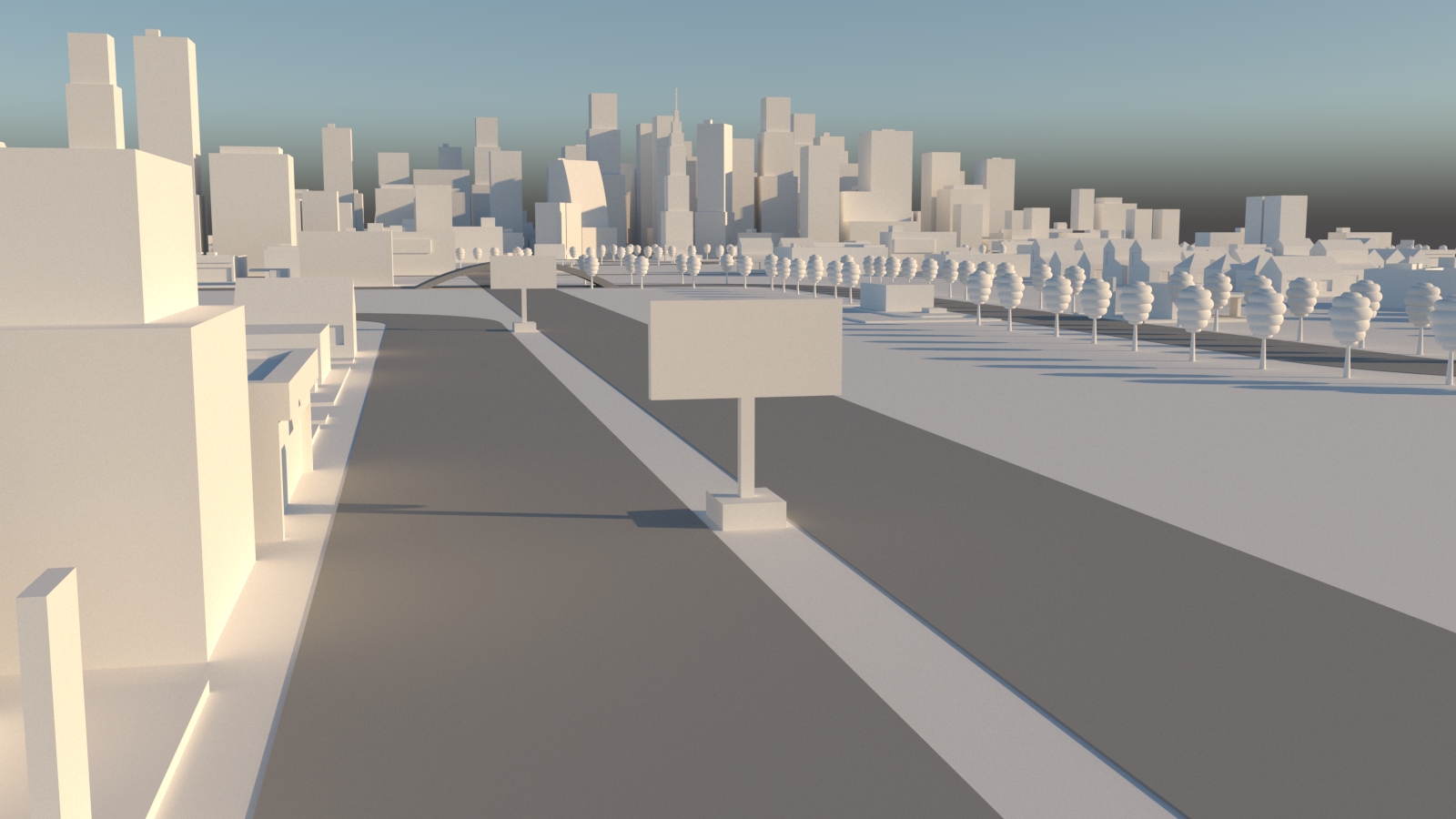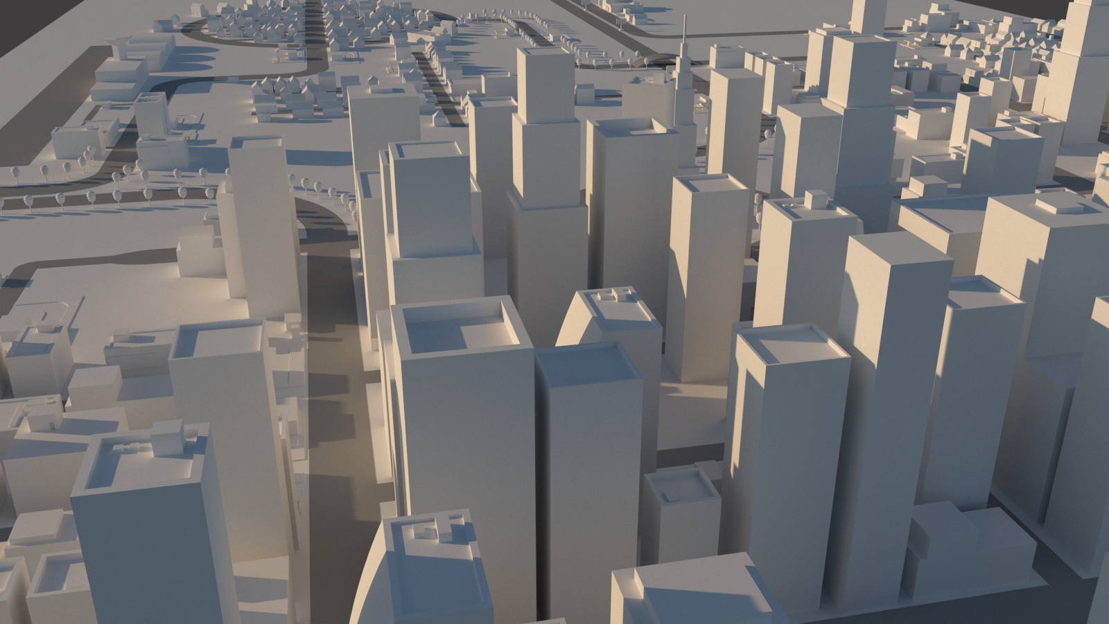 The layout of a megopolis consists of a large number of various buildings and structures. The scene contains 3503 objects. Оver 60 different building models.