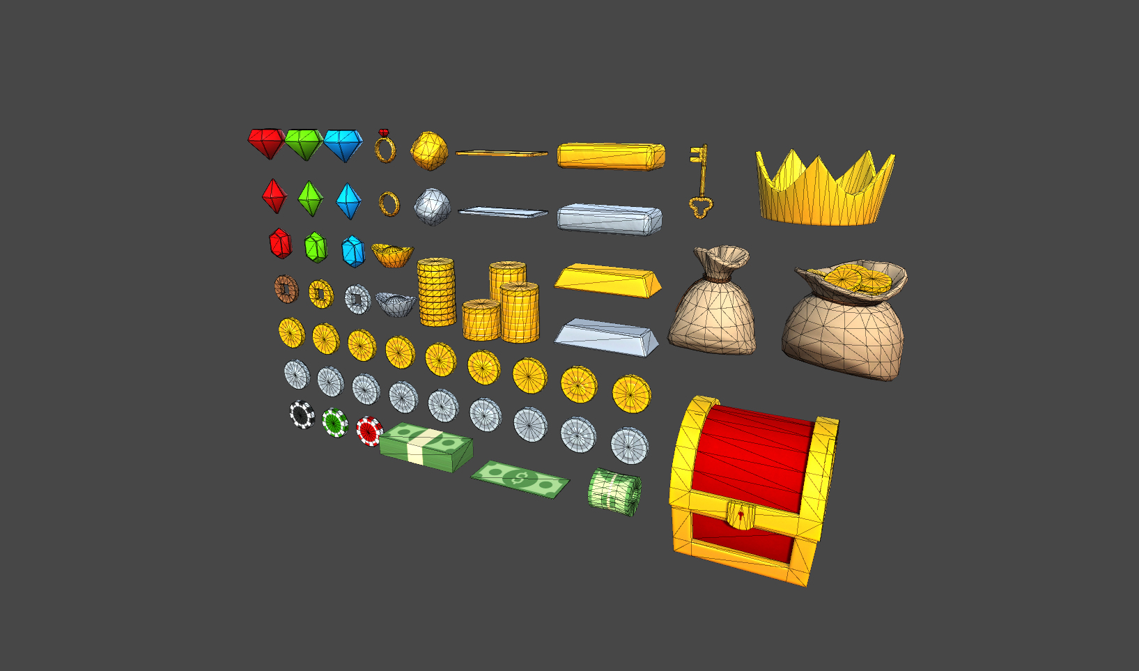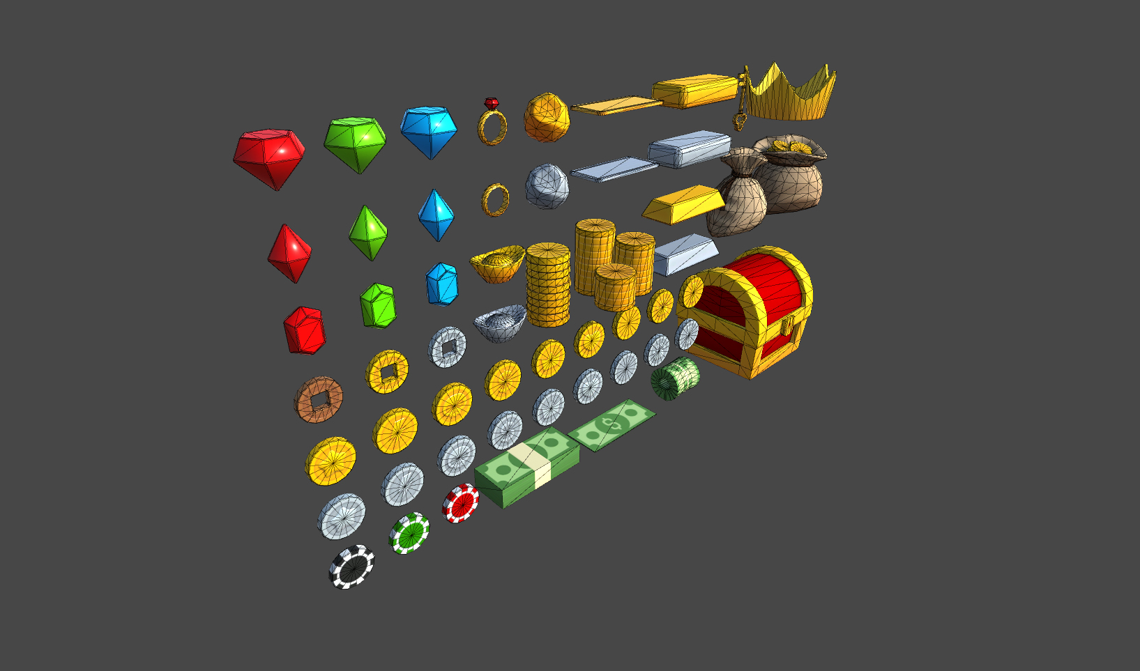 The models are between 12 and 1,368 Tris.