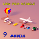 This pack contains 9 vehicle bodies with the wheels separated Can be used in mobile games