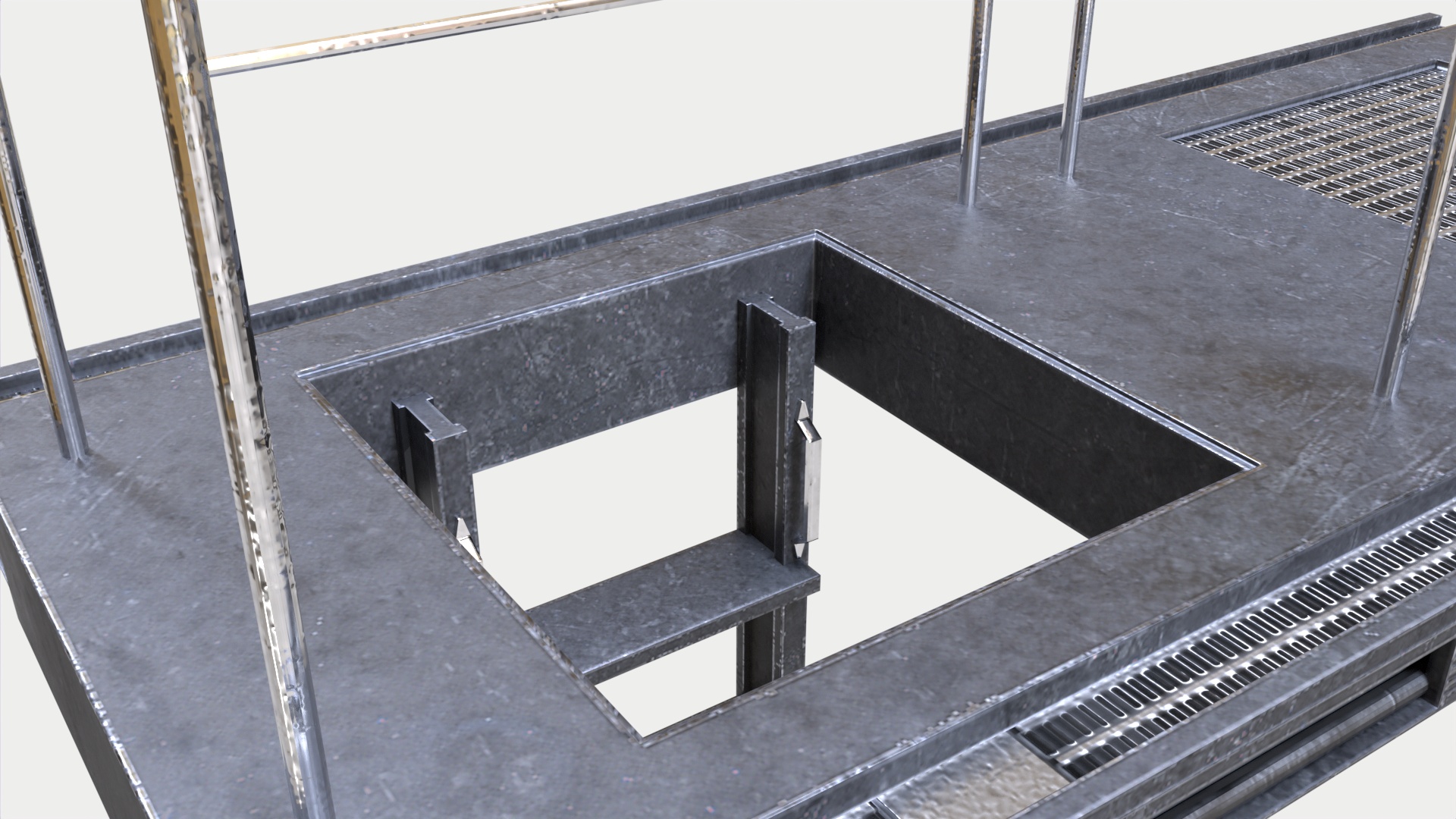 An element, a gaming asset that will help simulate an interior, a transition between floors, game environment builder, create level design. Model in realistic dimensions, using PBR materials
