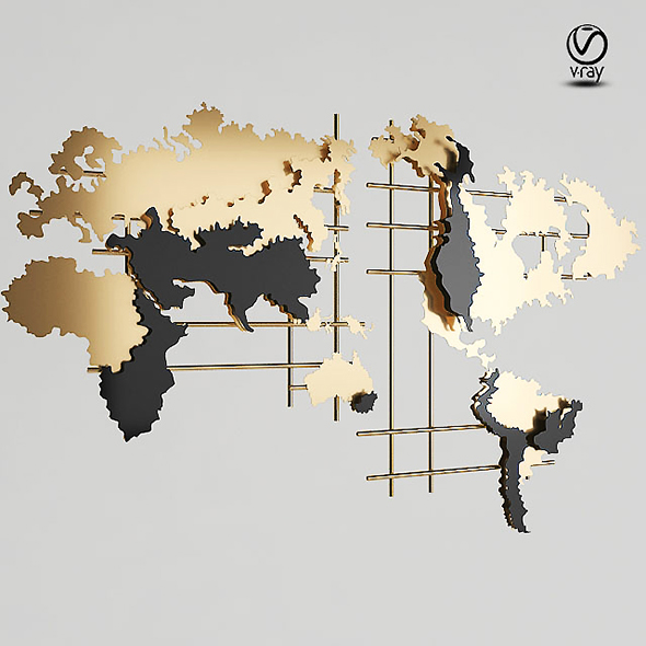 Decorative 3D Map_Wall_Panel. This file is created in 3dsmax and can be opened in any compatible packages. Archive includes files with the extension .max 2015, .max 2018, .fbx, .obj with V-Ray materials. Panel dimensions 1800 * 1140mm