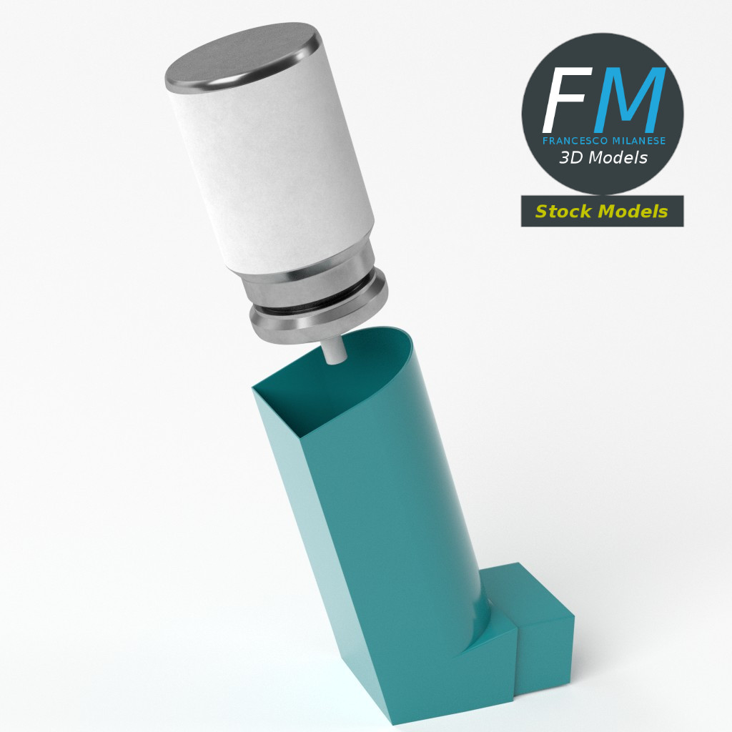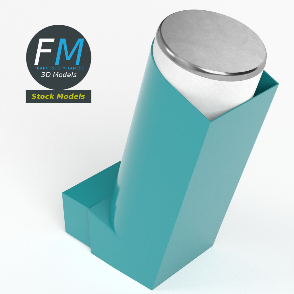 MDI metered dose inhaler 3D Model. 2 individual objects (actuator, canister), each one with its own non overlapping UV Layout map, Material and PBR Textures set. Production-ready 3D Model, with PBR materials, textures, non overlapping UV Layout map provided in the package.