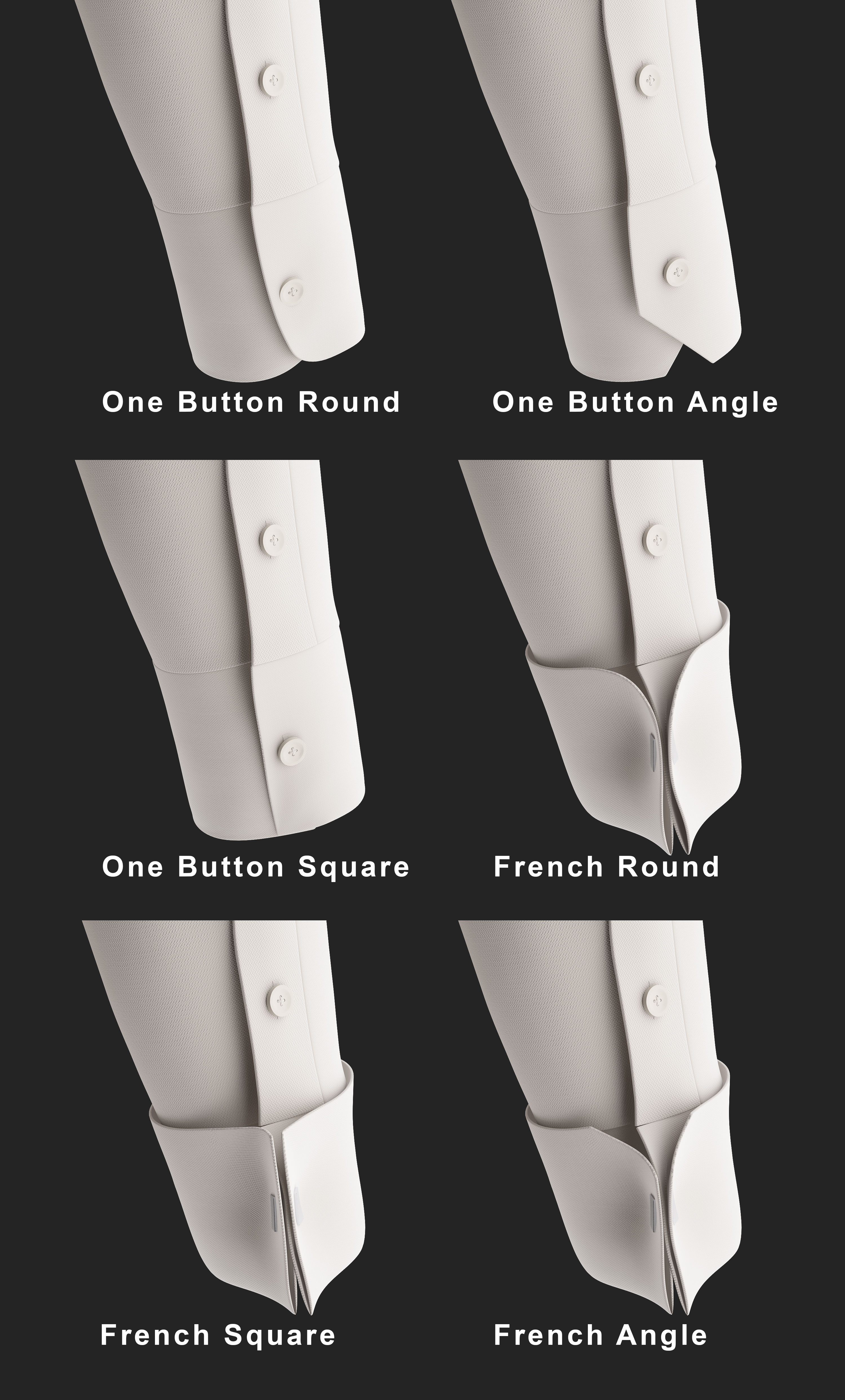 The Shirt Model can be easily customized with different types of Collar, Cuff, Plackets, Pockets and Back Options.