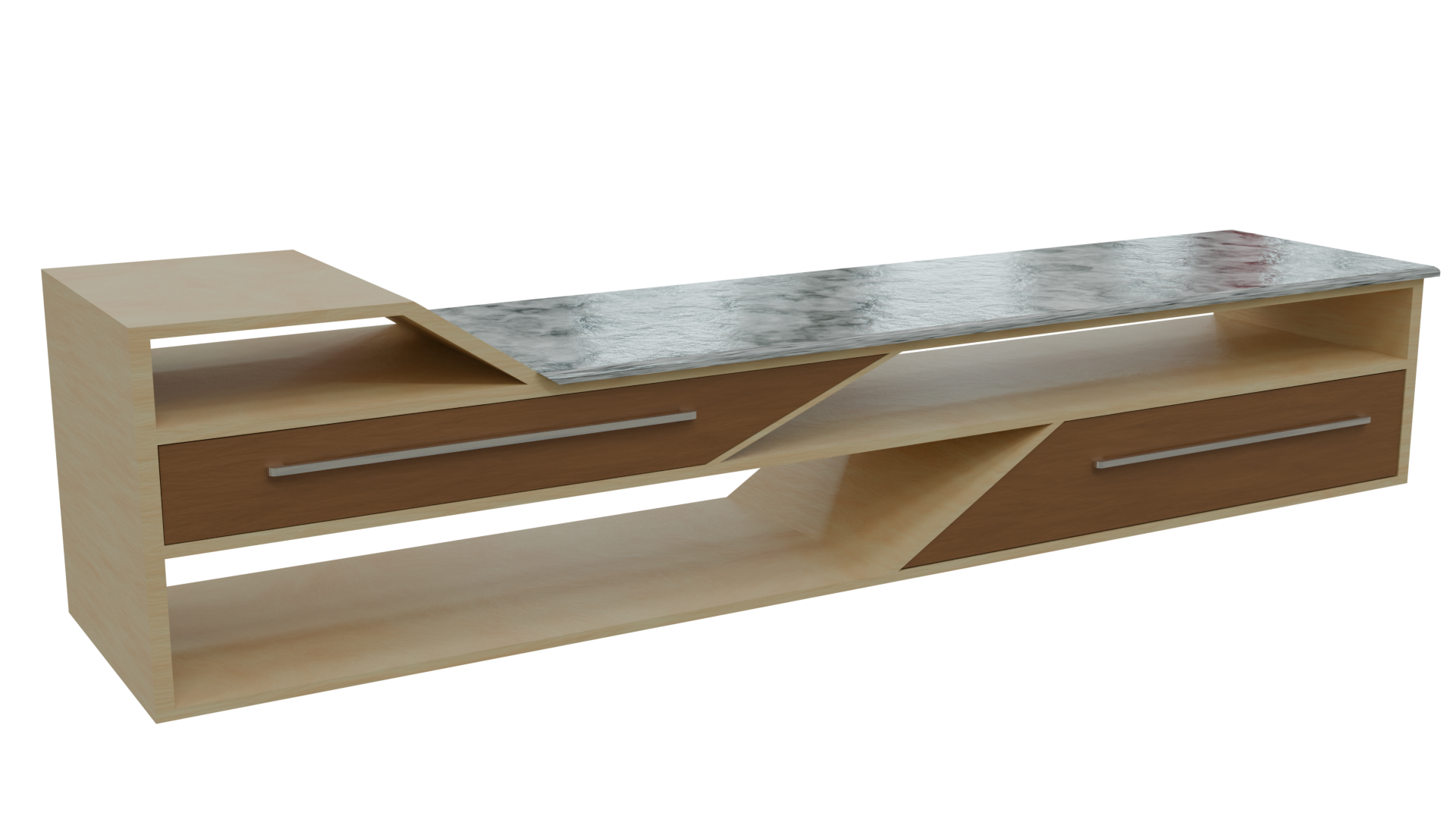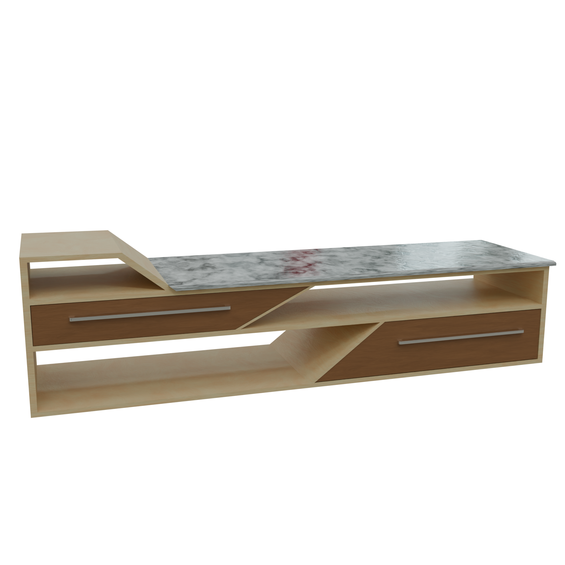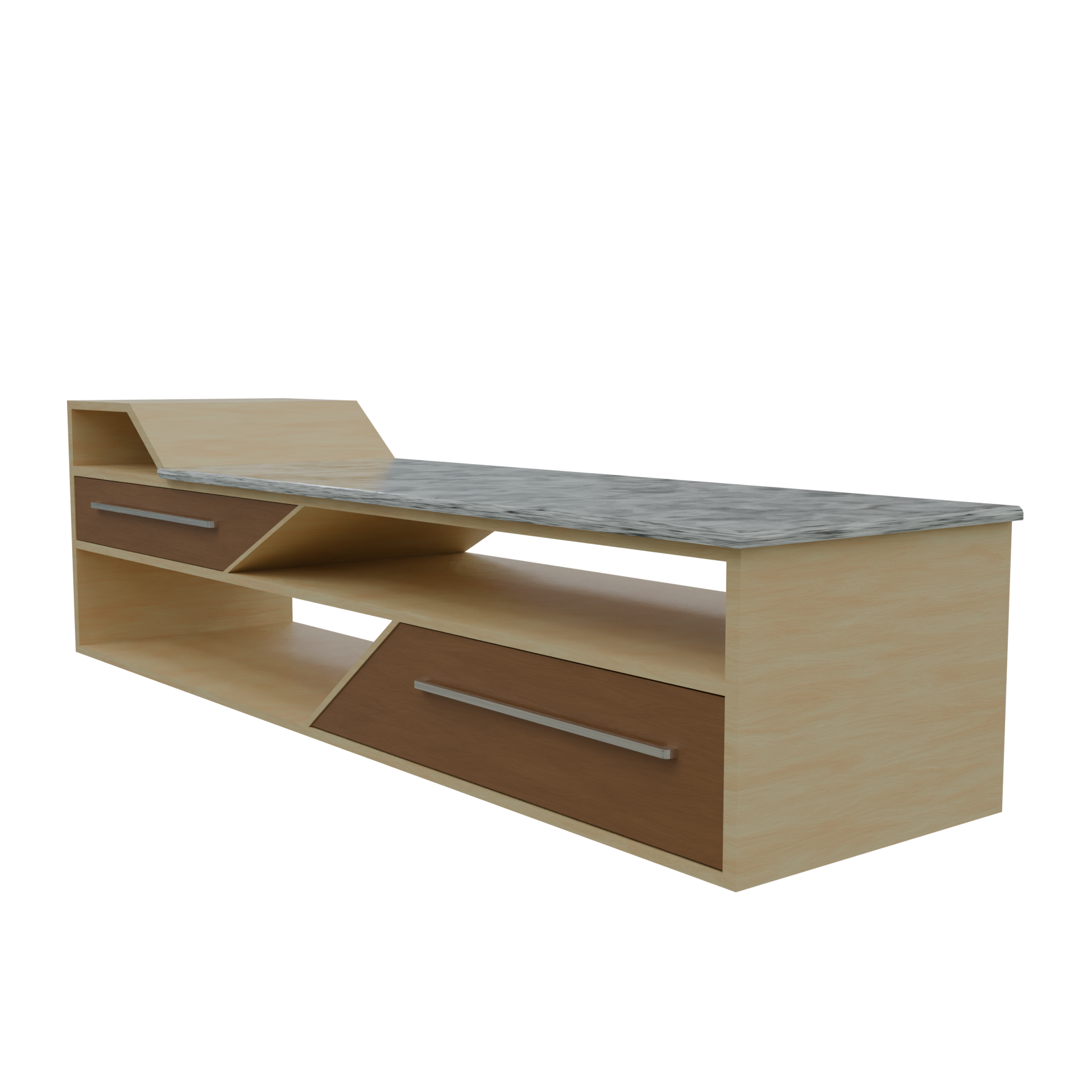 A modern TV table is a sleek, minimalist piece designed to complement contemporary spaces. It often features clean lines, high-quality materials like marble stone or wood, and finishes like gloss or matte. Typically, it includes open shelves and storage compartments for AV equipment with built-in cable management for a tidy look. Its design blends seamlessly with modern decor, emphasizing both form and function.