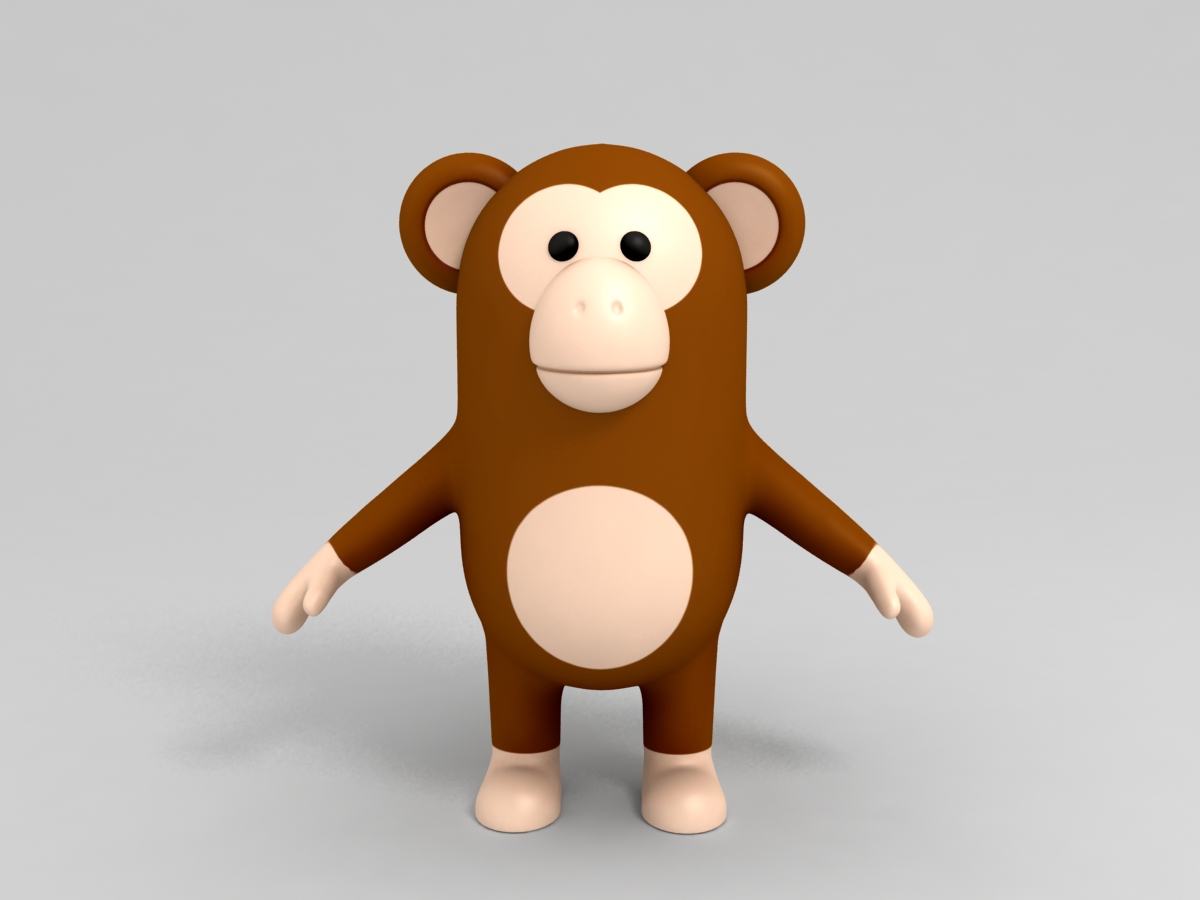 Monkey character 3d model in cartoon style.