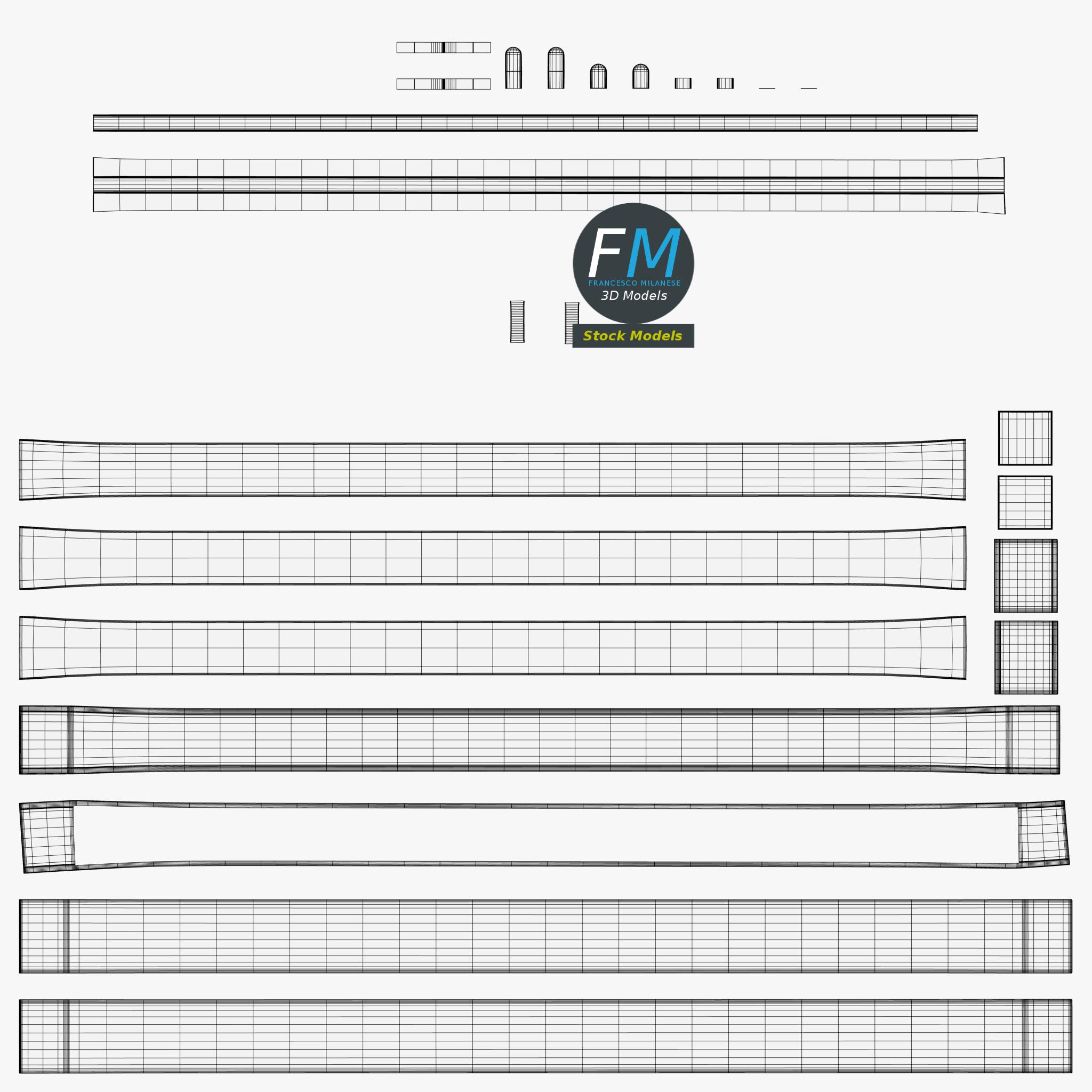 Easily customizable: UV unwrapped geometries, so you can create new Textures (or modify the existing ones) using the UV Layout maps provided in the package (as png with alpha).