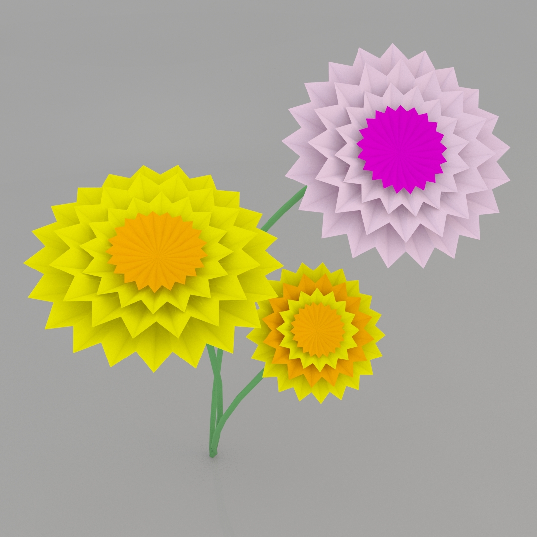Origami Flower Scene Contains Origami Flower There are also OBJ,3DS and FBX files: