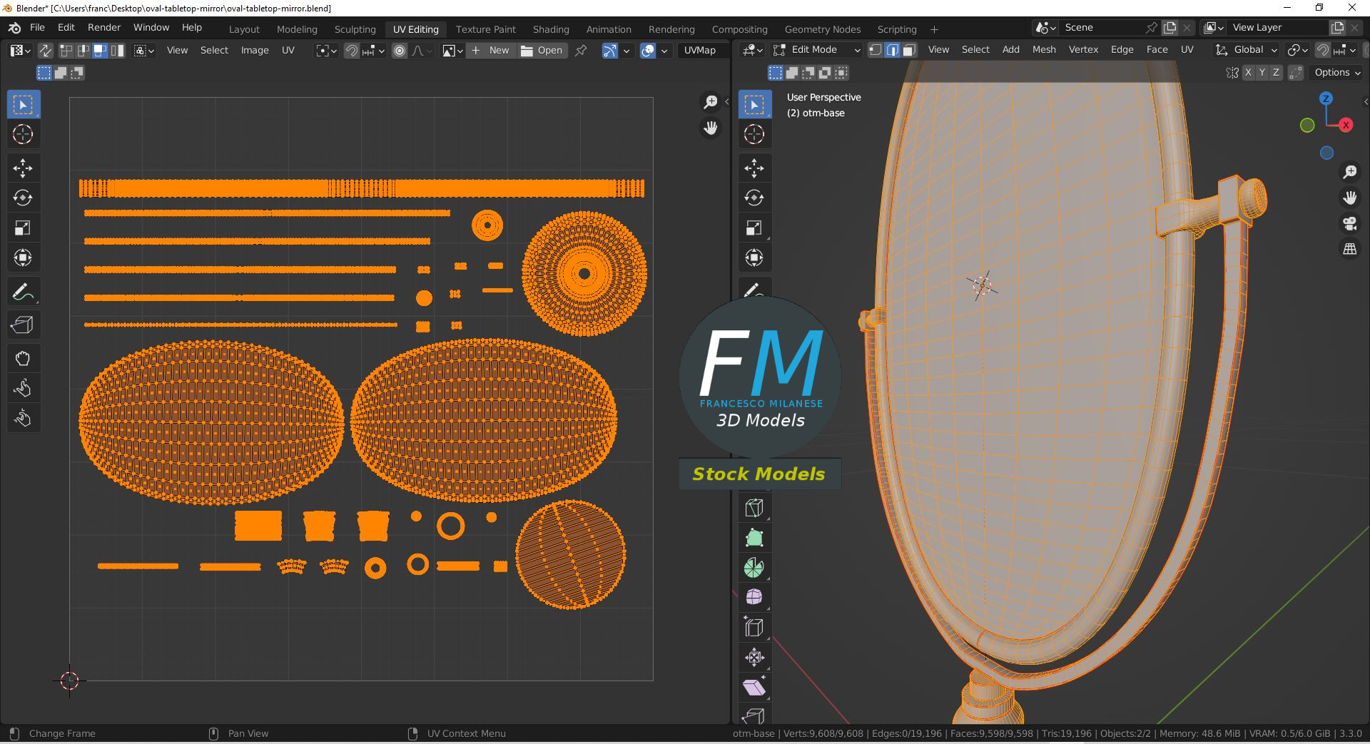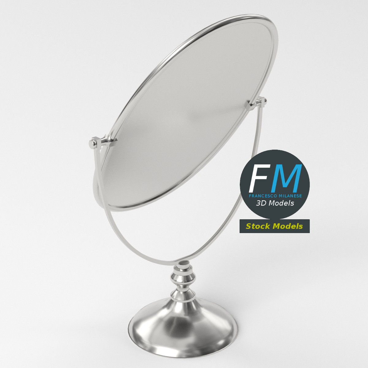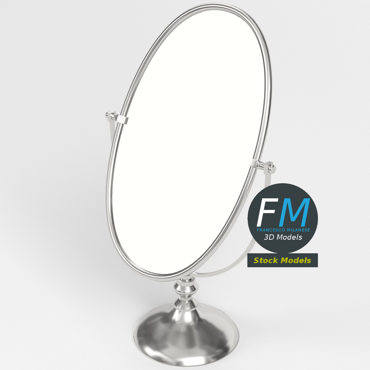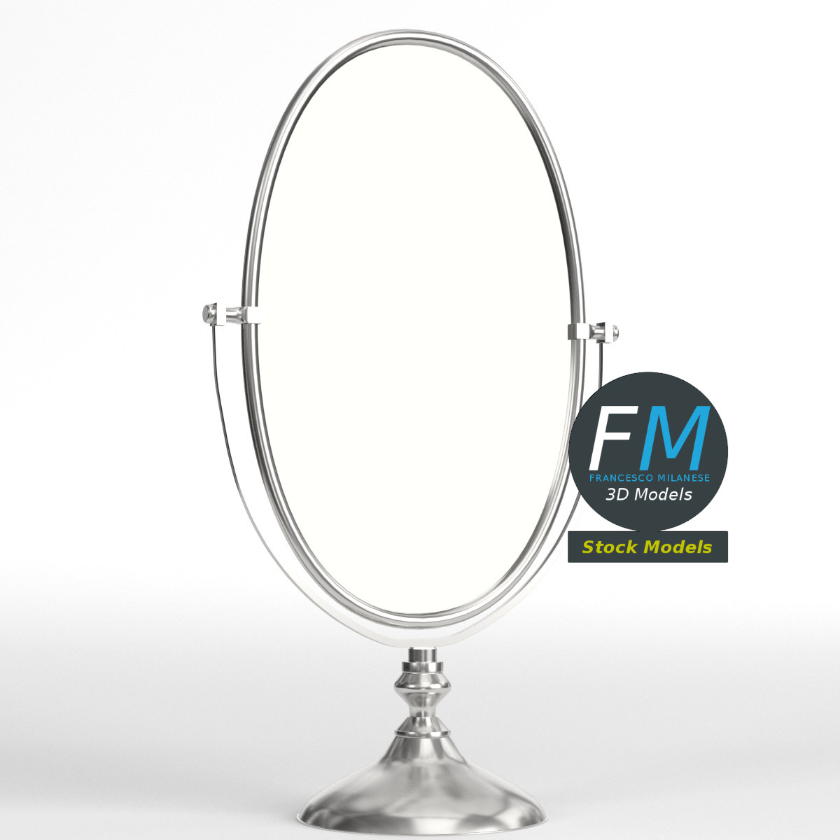 Oval tabletop mirror 3D Model. 2 individual objects (base, mirror; so, you can easily rotate the mirror), sharing the same non-overlapping UV Layout map, Material and PBR Textures set. Production-ready 3D Model, with PBR materials, textures, non overlapping UV Layout map provided in the package.