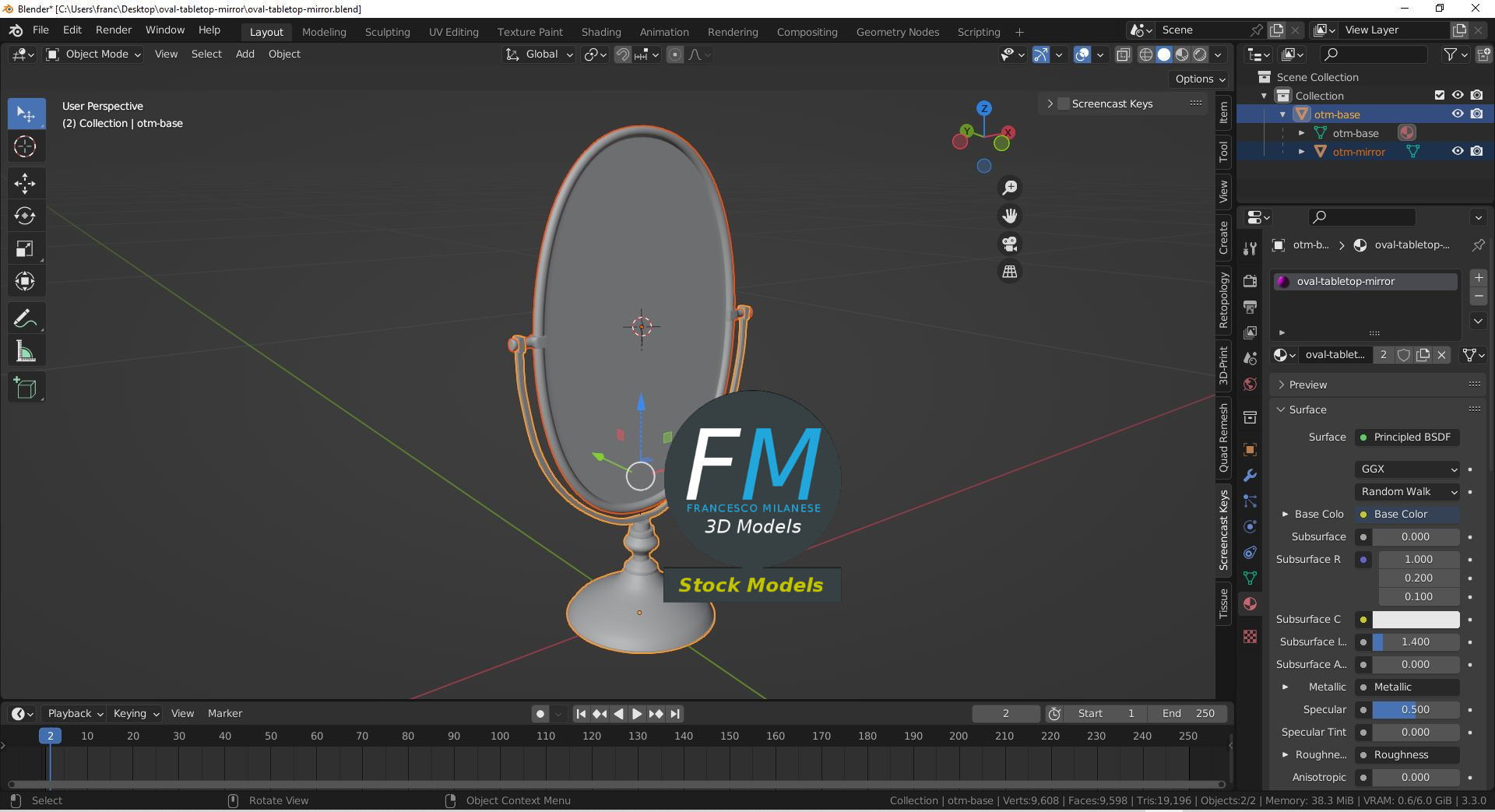 Sketchfab 3D preview: https://sketchfab.com/3d-models/oval-tabletop-mirror-83ef441c1ac94204809919698f46dbe5