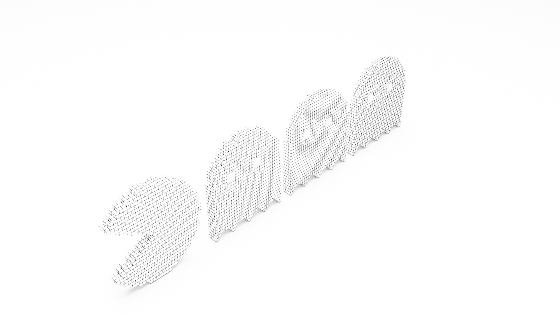3d model of pacman characters, 3d model created using a blender, content includes: