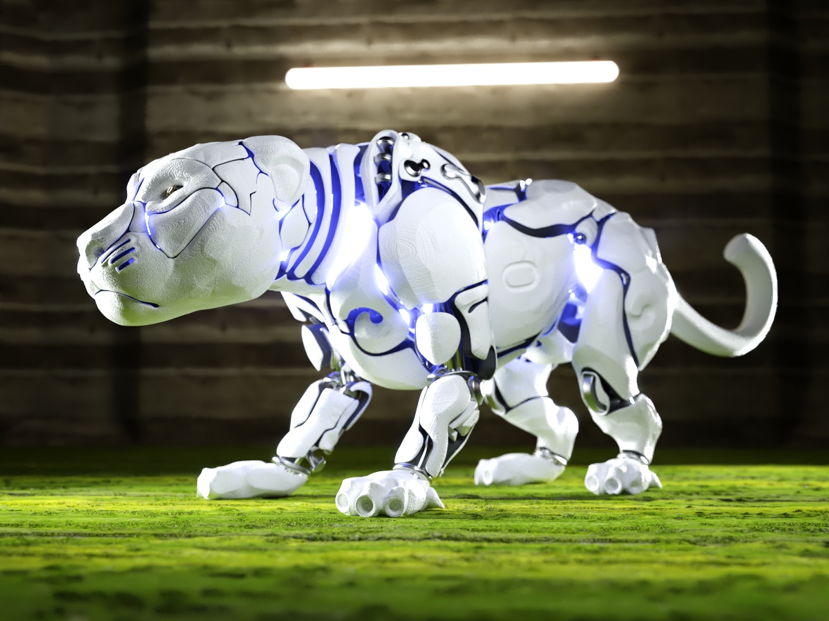 Robot Panther sci fi high quality model. With just the right amount of polygons to make it look soft. Ready to be modified and improved, made from solid parts, most parts can be 3D printed. It will accept perfectly different types of materials, all metal, cheap plastic, or crystal.