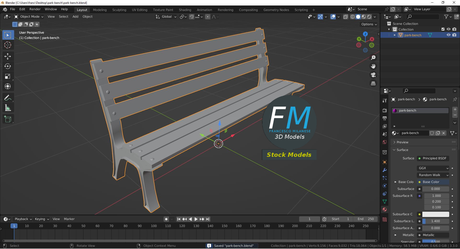 Sketchfab 3D preview: https://sketchfab.com/3d-models/park-bench-2dff023fb2aa4acba75387ad17f41f0c
