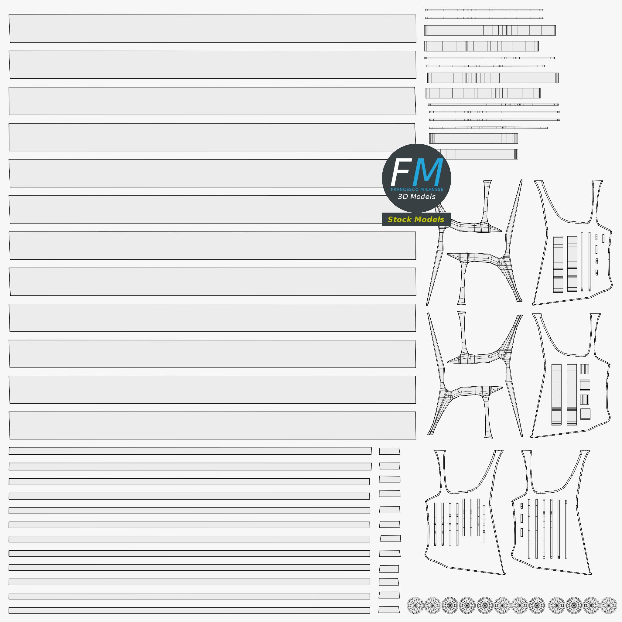 Easily customizable: UV unwrapped geometries; UV Layout maps provided in the package as png with alpha images.