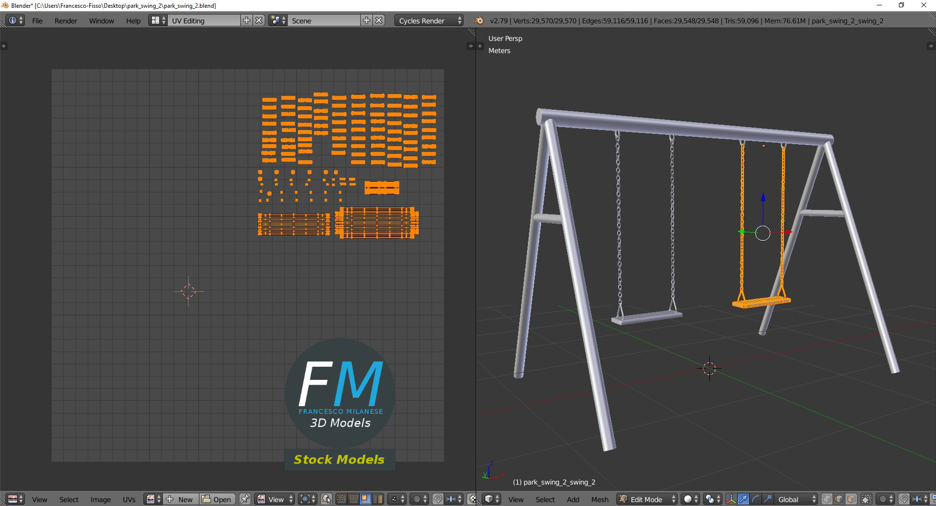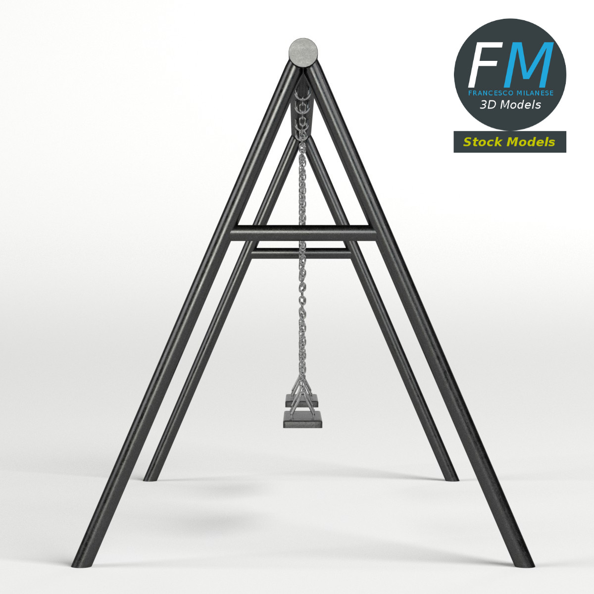 A simple swing 3D Model, nr. 2 in my collection; this one is a double swing. 3 objects (frame, two swings), parented, so you can easily rotate or animate the swings; the three objects share the same non overlapping UV Layout map, Material and PBR Textures set. Production-ready 3D Model, with PBR materials, textures, non overlapping UV Layout map provided in the package.