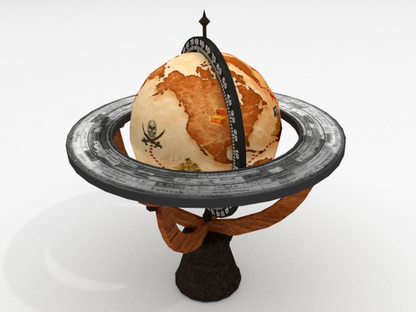 Low poly 3d model of a Pirate Globe: • Number of polygons – 915 • Number of vertices – 1024 • Diffuse map size – 1024p x 1024p • UVs unwrapped