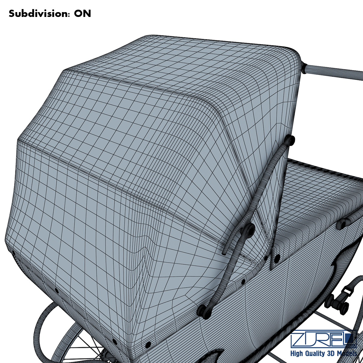 High quality model ‘Pram retro’ specially for your projects. Quality and accurate modeling, allows you to use model in any projects. Model corresponds to all proportions and the real size. Elaborated all small details, accurate UVW mapping and high-resolution textures make the model more realistic, allowing you to use a model in high-resolution renderers (close-up), as well as for creating videos, or video advertising or use in the film industry. The model is created in Autodesk 3ds Max 2010, rendered with Vray 2.10.01, textures and materials are included. Do not forget to rate the model, for us it is very important