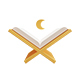Showing a Quran with crescent moon floating on top.