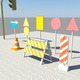 This is a collection of various entourage elements to be placed around or besides race track in a racing game: traffic signs, road signs, roadblock, oil barrel, stack of spare tires or individual tire, billboard and traffic lights (semaphores). All objects are low-poly.