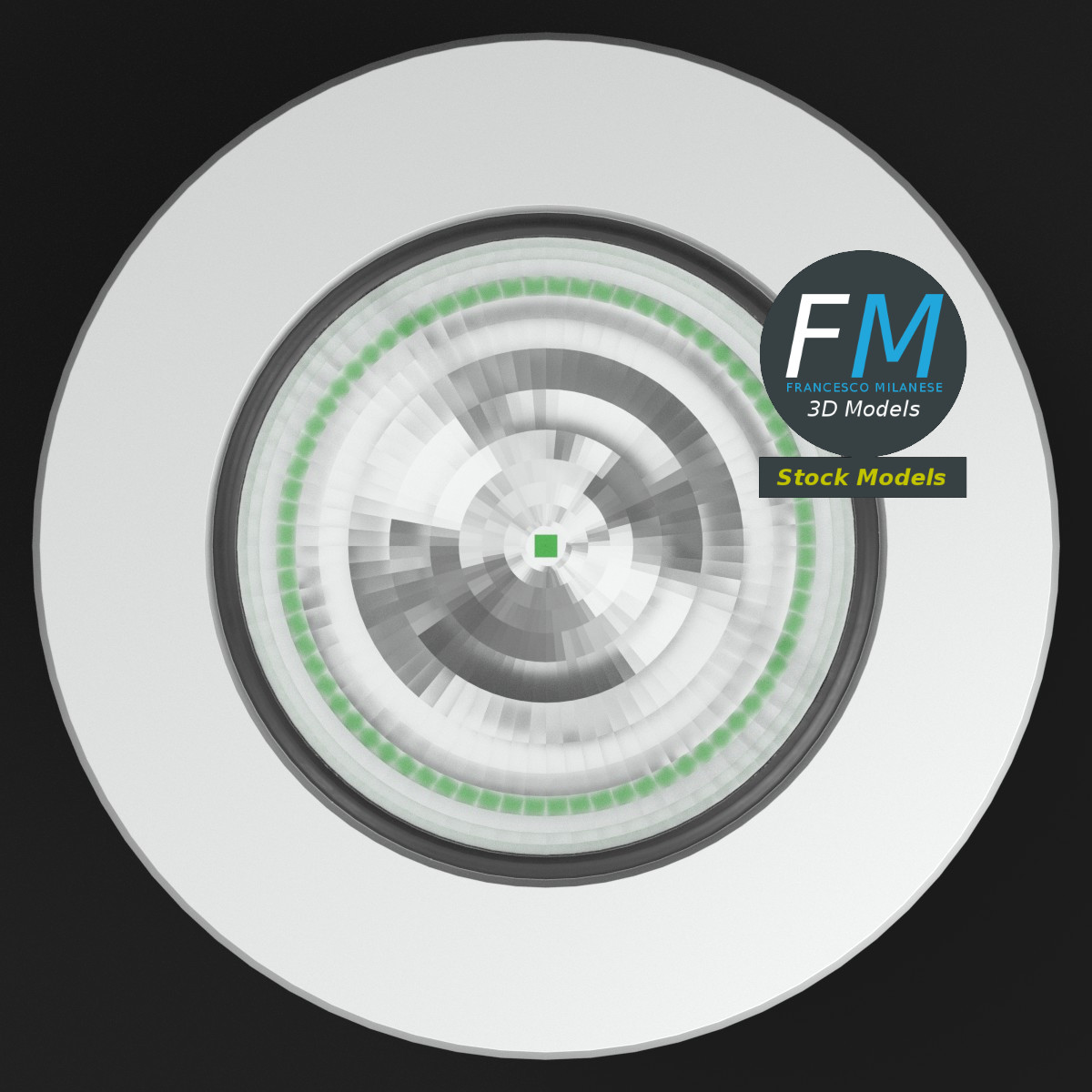 Recessed LED ceiling spotlight 3D Model. 2 individual objects (frame, glass), each one with its own non overlapping UV Layout map, Material and PBR Textures set. Production-ready 3D Model, with PBR materials, textures, non overlapping UV Layout map provided in the package.