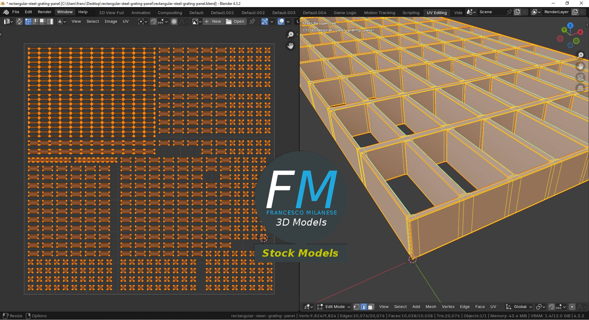 Sketchfab 3D preview: https://sketchfab.com/3d-models/rectangular-steel-grating-panel-5a1c319f9548452ab2a4342df1abe9b2