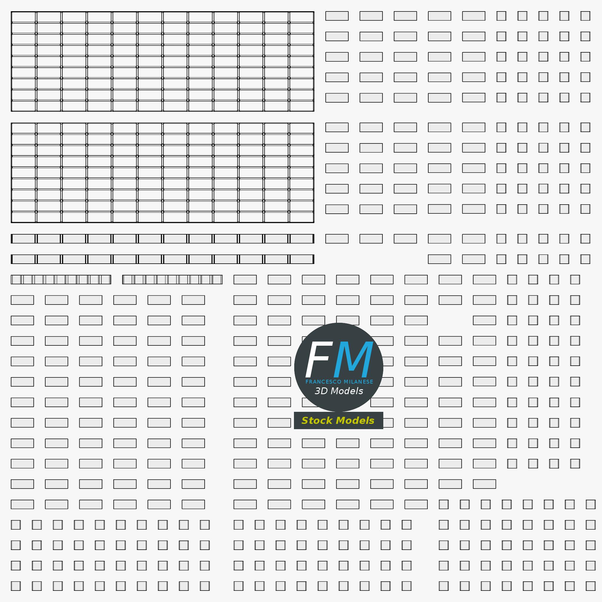 Easily customizable: UV unwrapped geometries; UV Layout maps provided in the package as png with alpha images.