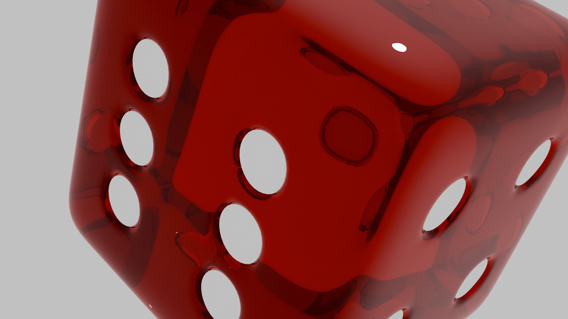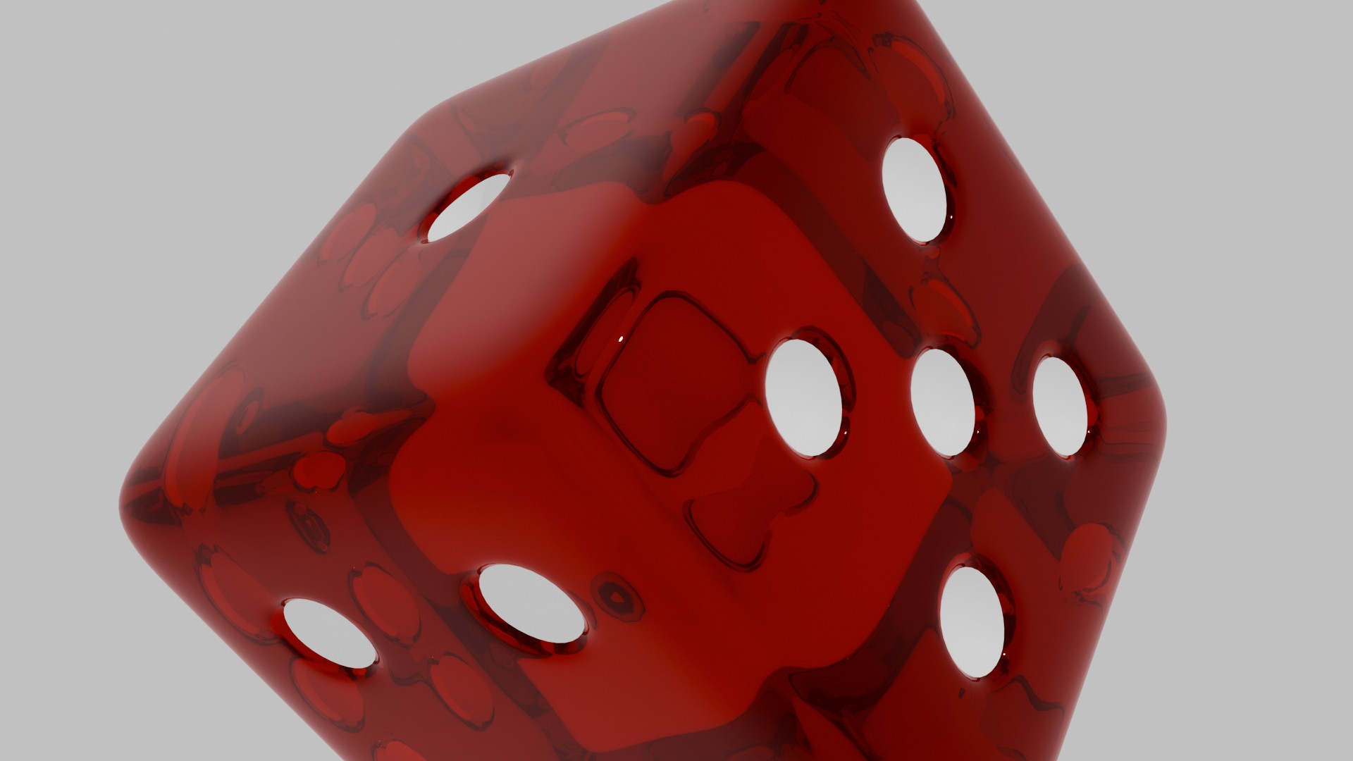 A high-resolution 3D rendering of a glossy, red transparent dice with white pips. Ideal for game-related content, digital art, or visual effects projects. This asset is perfect for enhancing UI design, video intros, or educational materials.