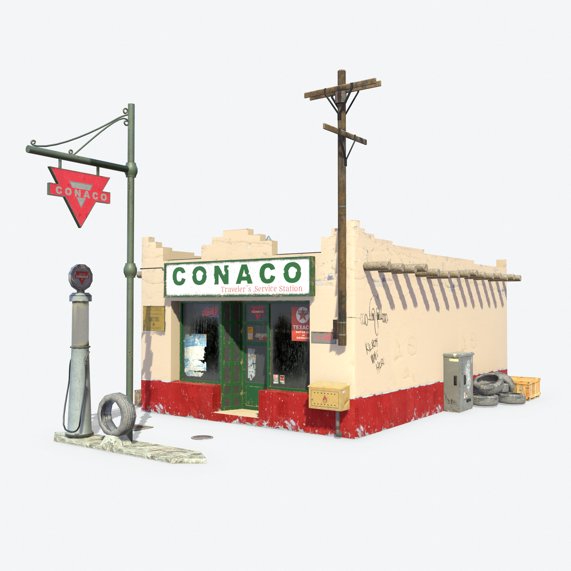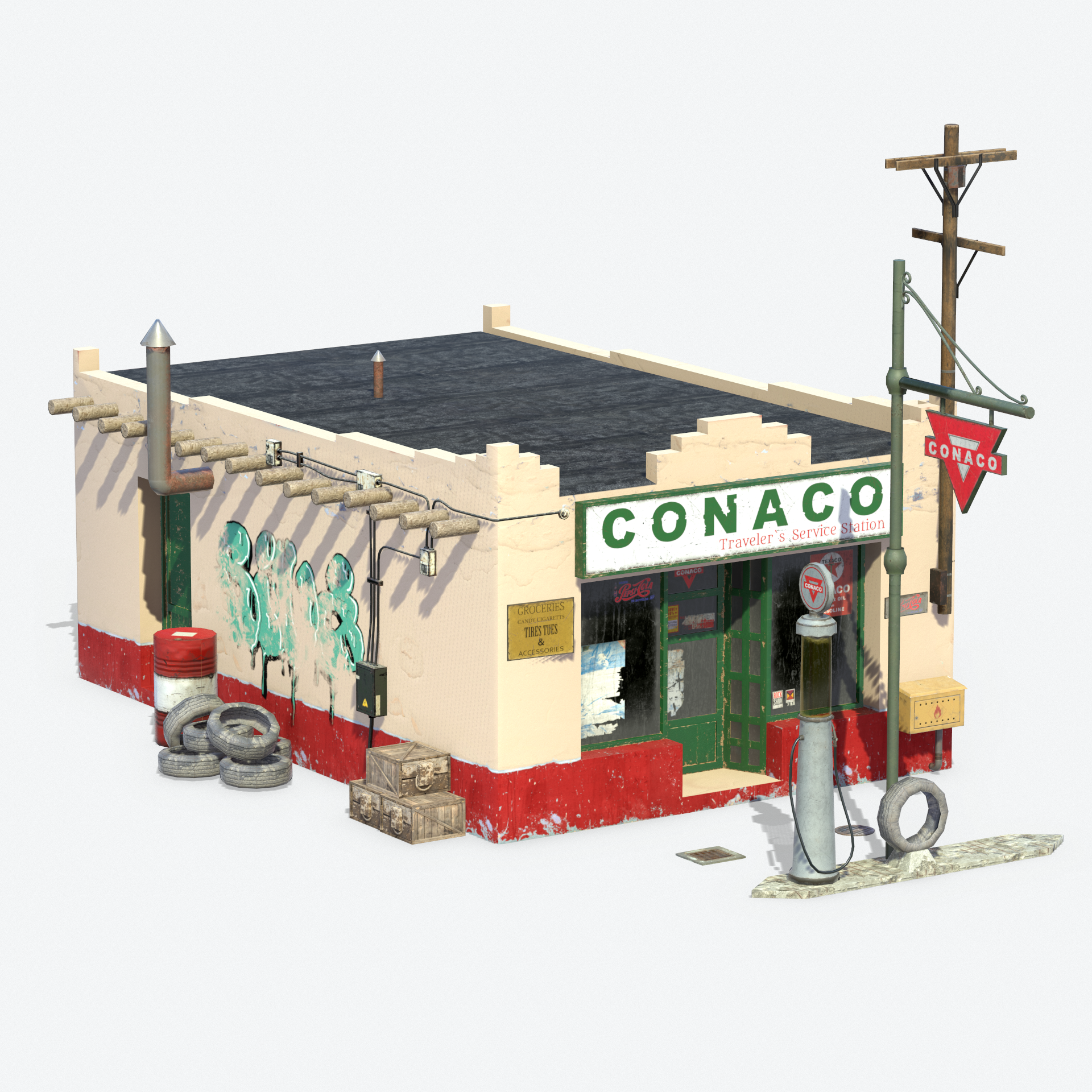 3D model of LowPoly Retro Gas Station - 8k Resolution of textures - Originally created with 3ds Max 2018 - Textured created with Substance Painter